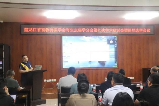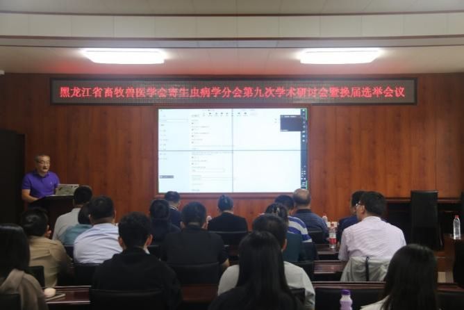 6月24日,黑龙江省畜牧兽医学会寄生虫病学分会第九次学术研讨会暨换届选举会议在东北农业大学召开,会议采用线上、线下相结合的形式,黑龙江省畜牧兽医学会理事长刘娣,东北农业大学动物医学学院院长李金龙,副院长范宏刚,兽医内科学分会理事长徐世文,中兽医学分会理事长于文会等近100人参加会议。会议由第四届寄生虫病学分会秘书长路义鑫主持。