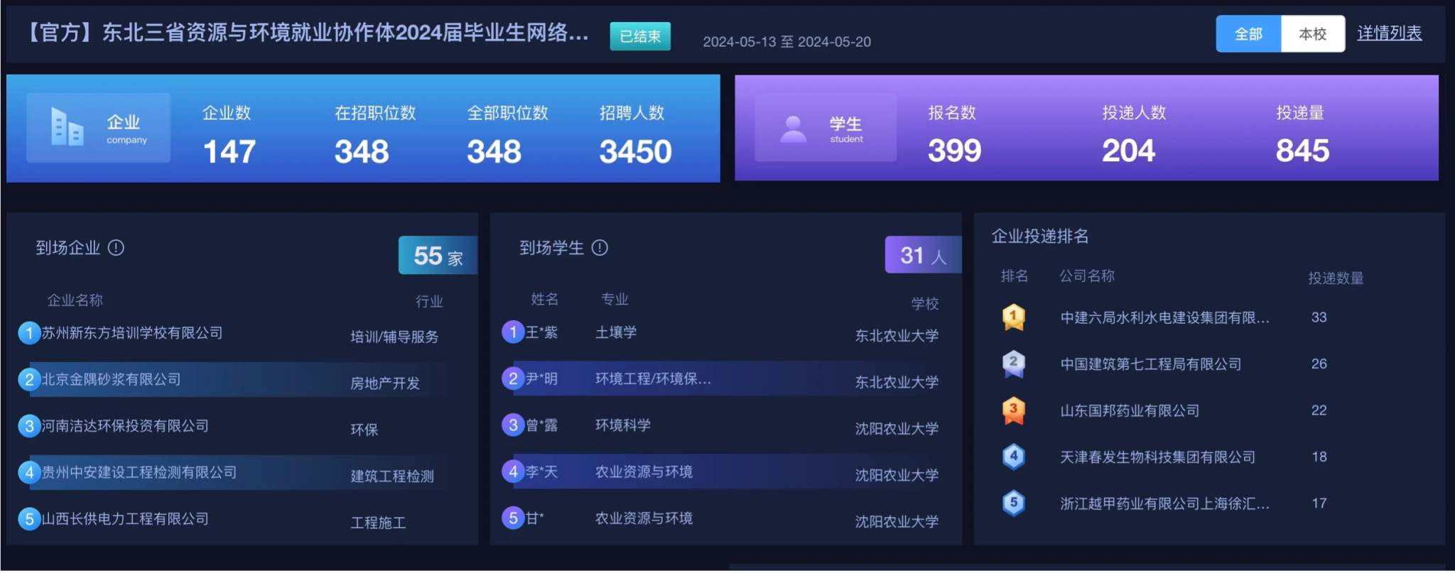 学院深入落实就业工作“一把手”工程,将就业工作纳入学院领导班子重要议事日程,每学期定期召开班子会议和全院大会动员推动就业工作,学院领导亲自参与双选会,为毕业生求职“站台”。今年3月,出台了《资环学院关于实施研究生就业导师包保机制的暂行办法》《资环学院2024届毕业生就业百日冲刺活动实施方案》,调动了研究生导师参与就业工作的积极性,明确了职责清单,压实了各方责任,提升了工作质效。今年4月,学院联合黑龙江八一农垦大学农学院、吉林农业大学资源与环境学院、沈阳农业大学土地与资源学院组建了东北地区农业类院校资源环境行业就业协作体,成员单位市场共建、资源共享,联合举办了协作体首届资源环境行业就业协作体网络双选会。