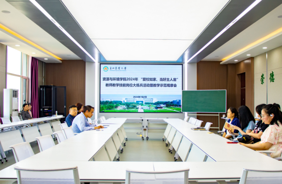 为进一步提升青年教师的教育教学能力,激发创新活力和创造潜能,切实提高教育教学质量,逐步建立“培训、练兵、竞赛、奖励”四位一体的教师教学技能岗位大练兵工作格局,按照学校《关于开展“爱校如家、当好主人翁”教师教学技能岗位大练兵活动的通知》的工作要求,7月2日,资源与环境学院邀请学院国家级一流课程授课团队负责人孙磊和荣获第七届黑龙江省高校青年教师教学竞赛工科组一等奖教师赵昕悦面向青年教师作示范教学展示与相关经验分享。学院行政负责人曲建华,学院党委副书记、工会主席许辉,分管教学工作副院长姜昭以及各系青年教师参加本次活动。