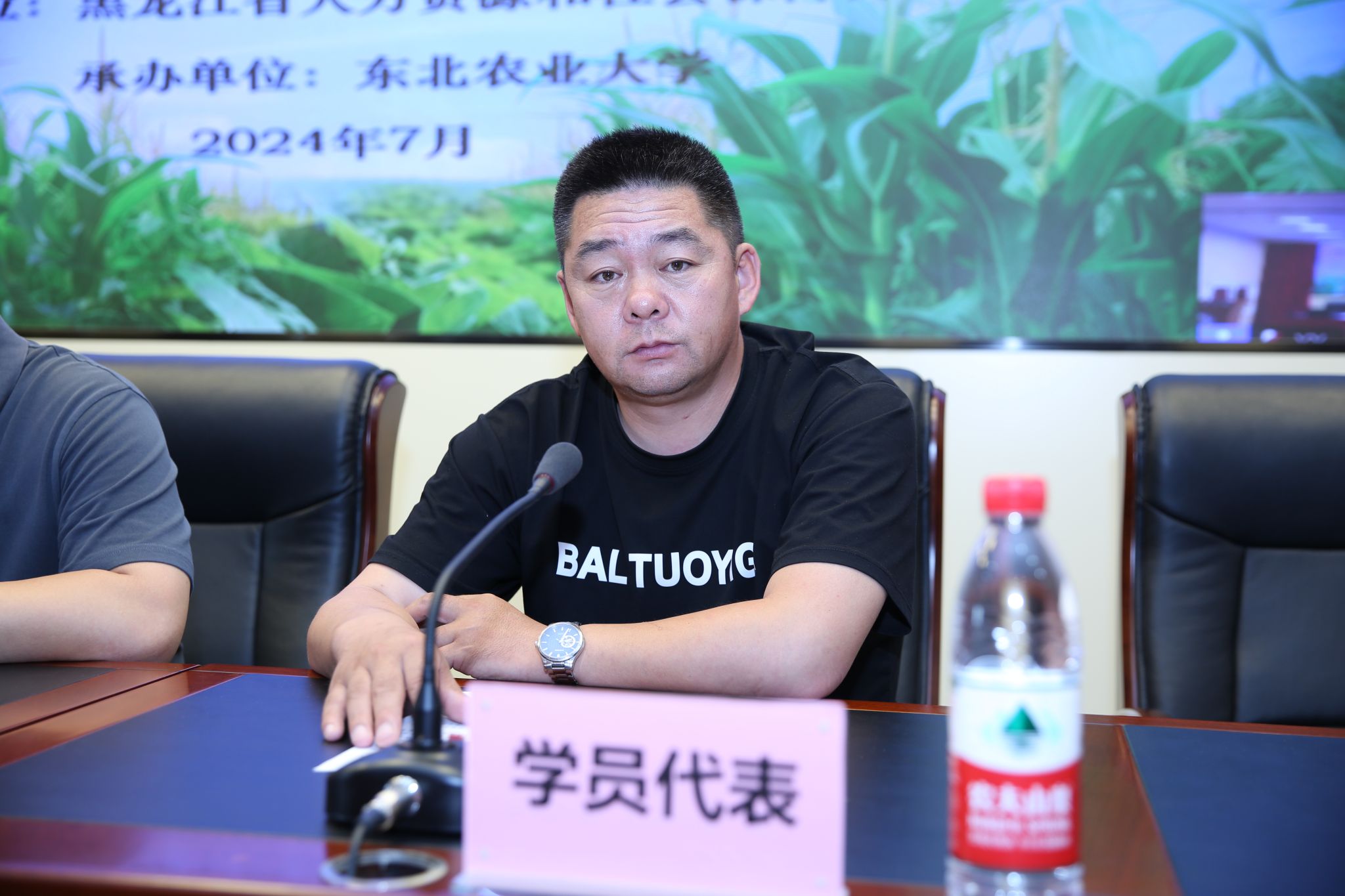 桦川县文涛农副产品农民专业合作社董事长高连生作为学员代表表示,学习新技术、掌握新知识是时代赋予新时代农民的使命和责任,全体学员将珍惜这次难得的学习机会,全力以赴投入到学习中去,深入了解和掌握大豆玉米带状复合种植技术的核心要义和实践应用,以饱满的热情和积极的态度,认真聆听专家的授课、积极参与课堂讨论、认真完成实训任务。