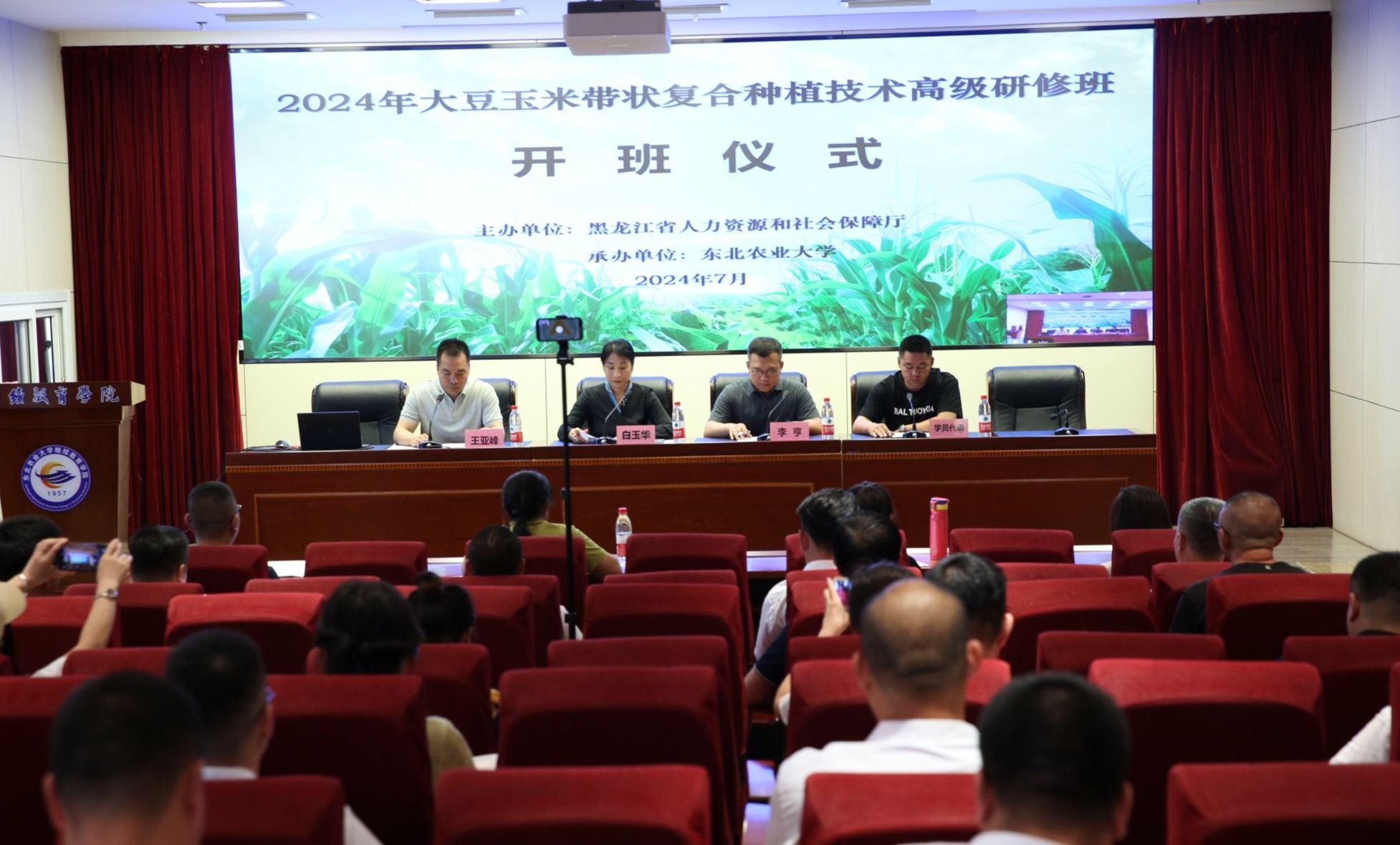 7月9日上午,由黑龙江省人力资源和社会保障厅主办、东北农业大学承办的“2024年大豆玉米带状复合种植技术高级研修班”开班仪式在继续教育学院七楼会议室举行。来自我省从事家庭农场经营者,农民合作社带头人,农村创业创新带头人,农业企业、农业新型经营主体,农业推广技术人员、涉农院校专业技术与政府相关部门管理人员等150余名学员通过线上、线下方式参加了开班仪式。继续教育学院副院长白玉华,教务处非学历教育管理科科长李亨出席开班仪式。开班仪式由学院培训科科长王亚峰主持。