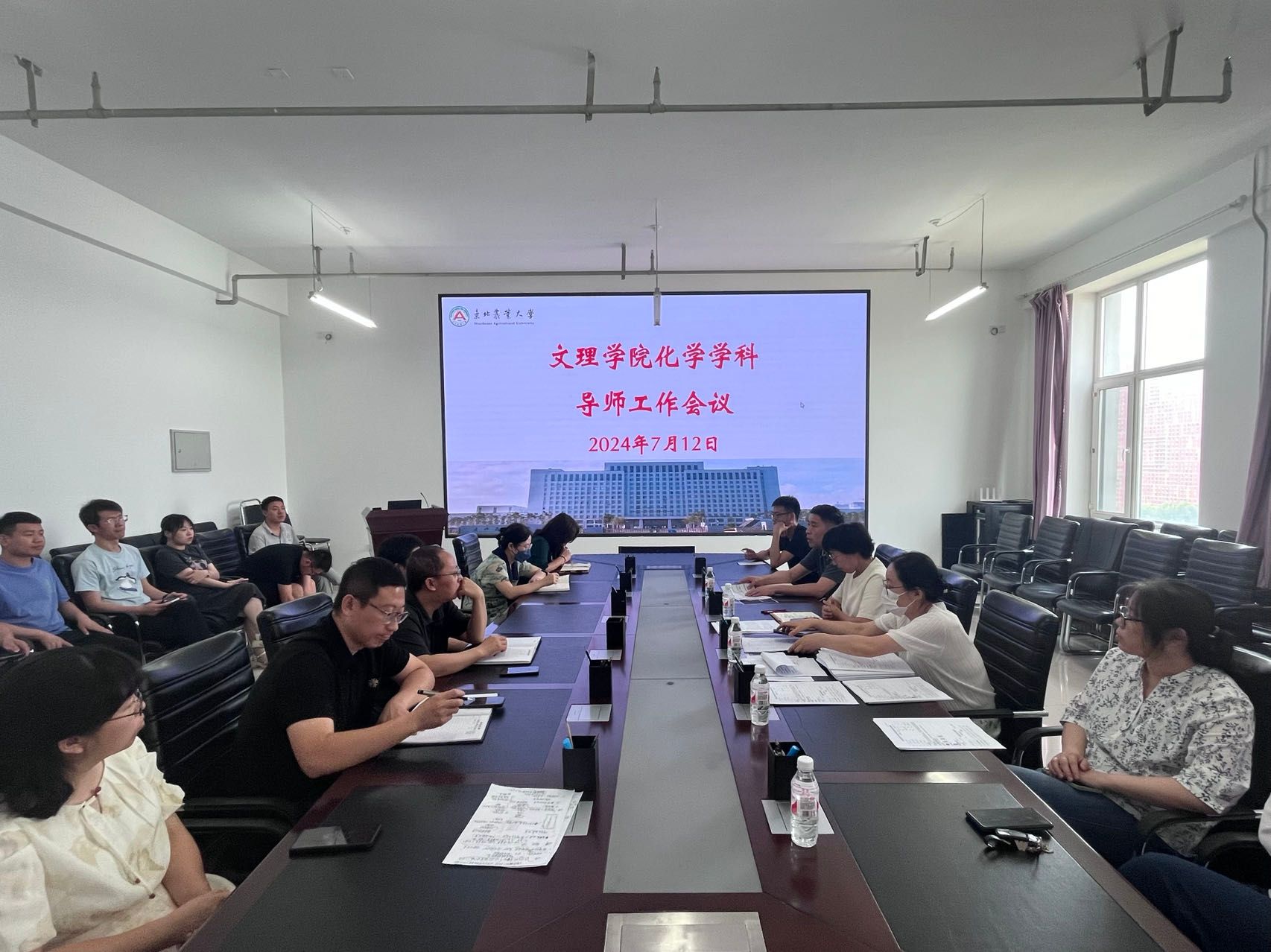 为持续推动研究生教育高质量发展,全面落实立德树人根本任务,7月12日上午,文理学院于成栋楼926会议室分别召开外国语言文学学科、化学学科导师工作会议,院长付颖、副院长白靖文、各学科带头人及全体招生导师参加会议,会议由白靖文主持。