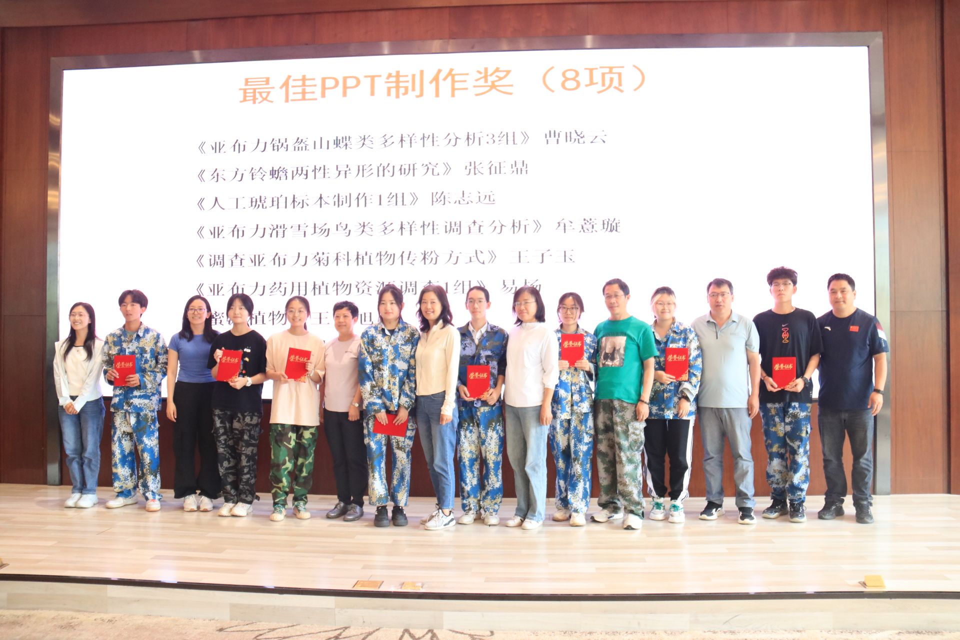 实习最后,各专项小组进行了精彩的实习总结汇报,学生们将创意与灵感付诸行动,现场展示了亲手创作的寓意深刻的动植物标本和不同气味的特色肥皂、香包等成果。汇报后,评选出生物学野外实习最佳视频宣传奖、最佳PPT制作奖和最佳专项创新奖,并由专业指导老师为同学们进行颁奖。随后,学院教师徐纯柱以“八个忘不掉”和一首“江城子-生物学实习”将本年度的生物学野外实习画上了圆满的句号。