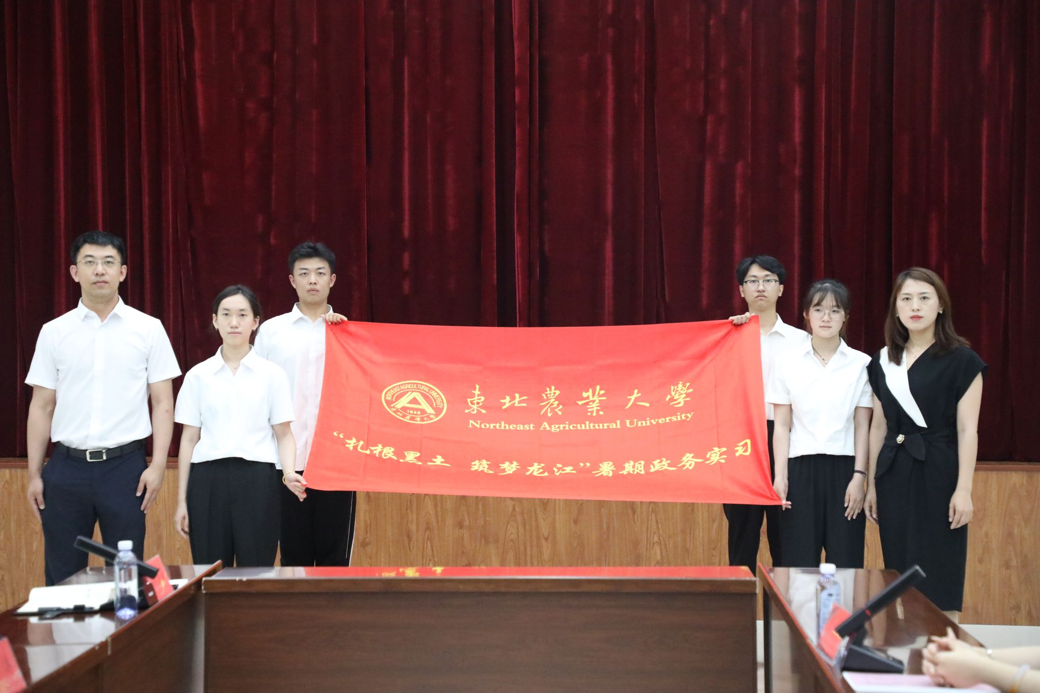 随后,张纪韬代表绥棱县委、县政府对东北农业大学一直以来对政务实习工作的重视和支持表示感谢。他说,绥棱县委县政府高度重视青年和人才工作,通过出台青年和人才发展政策,实施发展项目,为广大青年提供施展才华、服务社会的广阔舞台。希望同学们要以青年学子的身份认真参与,在实习实践中练就才干本领;以国之栋梁的标准严以律己,磨炼坚强意志,在机关岗位上贡献青春力量;以踔厉奋发的姿态勇担使命,传承奋斗品格,在人生道路上坚定理想信念。