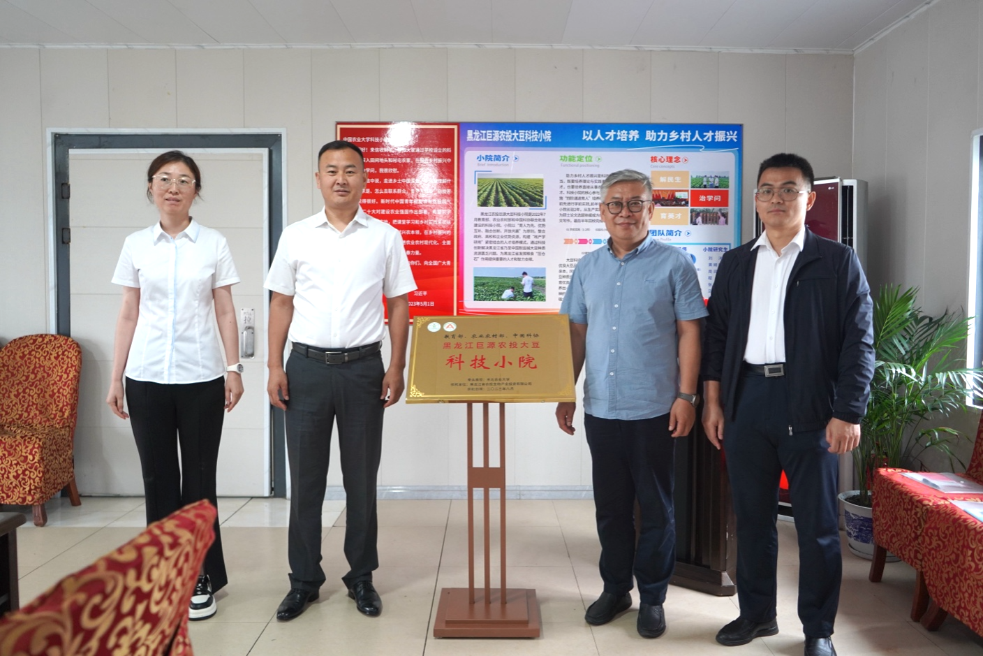 刘世英、辛大伟、武晓东、王璐共同为黑龙江巨源农投大豆科技小院揭牌。