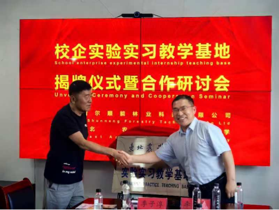 为进一步创新人才培养模式,深化教学实验实习活动,7月30日,公共管理与法学院与齐齐哈尔顺能林业科技有限公司在齐齐哈尔市梅里斯区举办校企实验实习教学基地揭牌仪式暨合作研讨会。齐齐哈尔顺能林业科技有限公司于洪洁、孙瑞岐、吕世军、季子淳、黄斌、张艳波等代表,齐齐哈尔市梅里斯区林草局局长刘孝辉,东北农业大学公共管理与法学院院长杜国明、副院长程镝、兼职教授李玉恒、副教授李冬梅出席了活动,拉夫堡大学教授Darren Smith和Louise Holt,河南大学副教授吴娜琳和湖南大学副教授谷浩受邀到场。签约仪式由齐齐哈尔顺能林业科技有限公司代表季子淳主持。