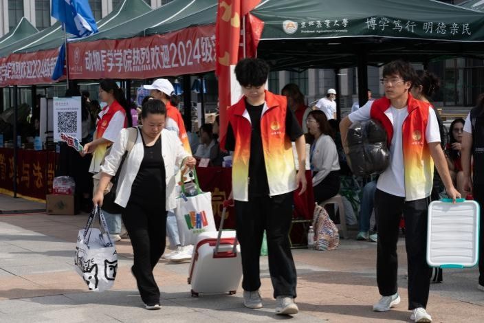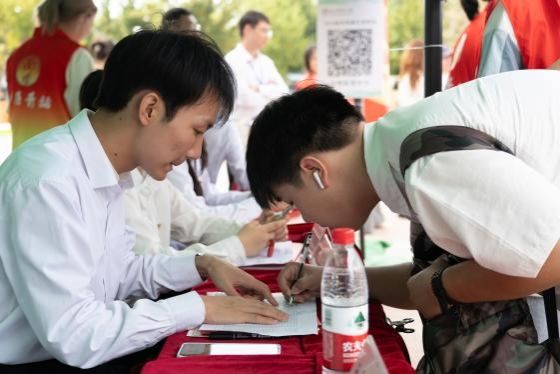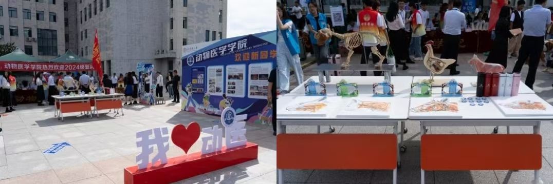 为确保新生入学报到工作有序进行,学院进行了周密细致的安排,提前对迎新场地进行了精心布置,将迎新场地划分为签到区、志愿者服务区及家长休息区三个主要区域,签到区设置了迎新宣传展板,并以学院吉祥物“安安”设计了拍照打卡点。场地还设置了特色动物、动物模型以及动物手绘解剖图等展示台。学生志愿者为新生提供了全方位的迎新服务,从新生抵达校园、办理签到手续,再到搬运行李,竭尽全力将迎新服务做到最好。学院领导班子到迎新现场详细了解学院新生报到情况,学院还为新生及家长们准备了饮用水、食物、雨衣等必需品,将温暖迎新理念付诸实践,使新生能够迅速融入动医学院大家庭。
