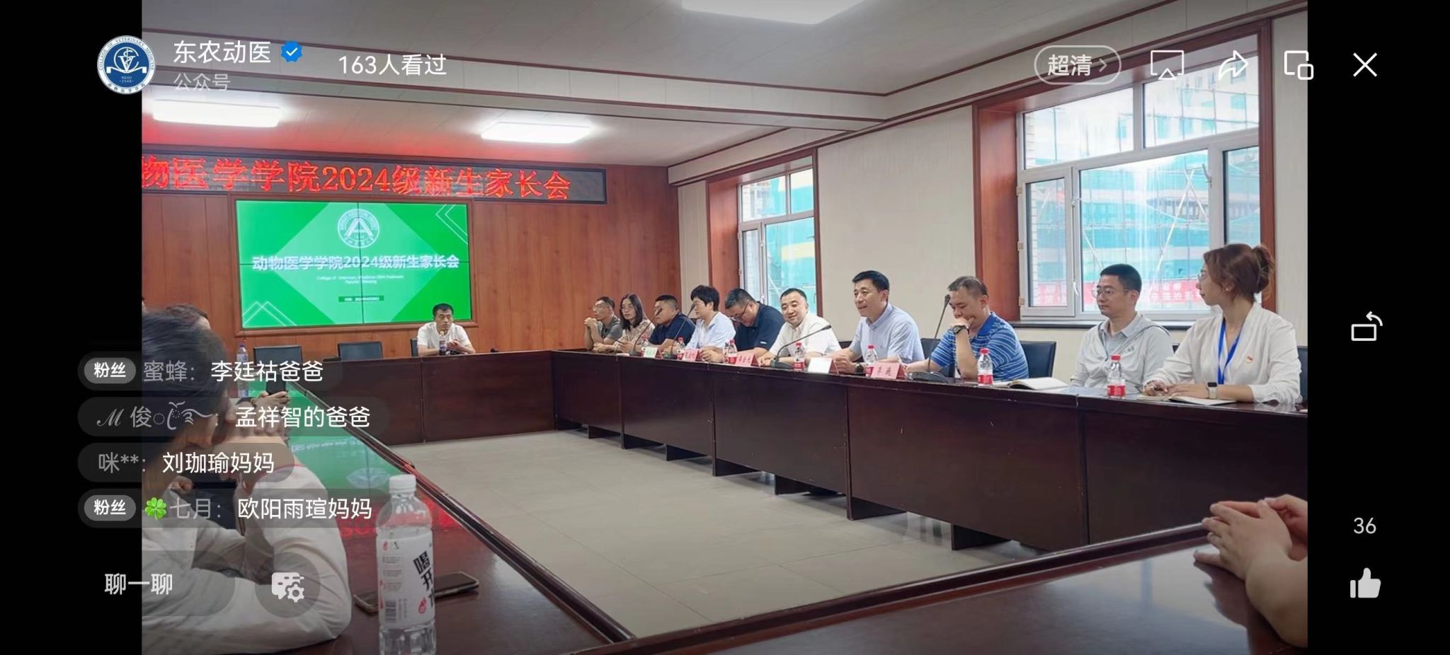 为增进教师与家长之间的沟通,深化家校共育,全面服务学生成长成才,学院于8月30日下午15:00在临床楼举办2024级新生家长交流会。会议采取线上线下相结合的形式,通过“东农动医”微信公众号进行网络直播。学院院长李金龙,党委副书记赵文和,副院长范宏刚、李巍,教务科科长刘立华,2024级新生班主任,学院辅导员代表及2024级新生家长参加会议。会议由赵文和主持。