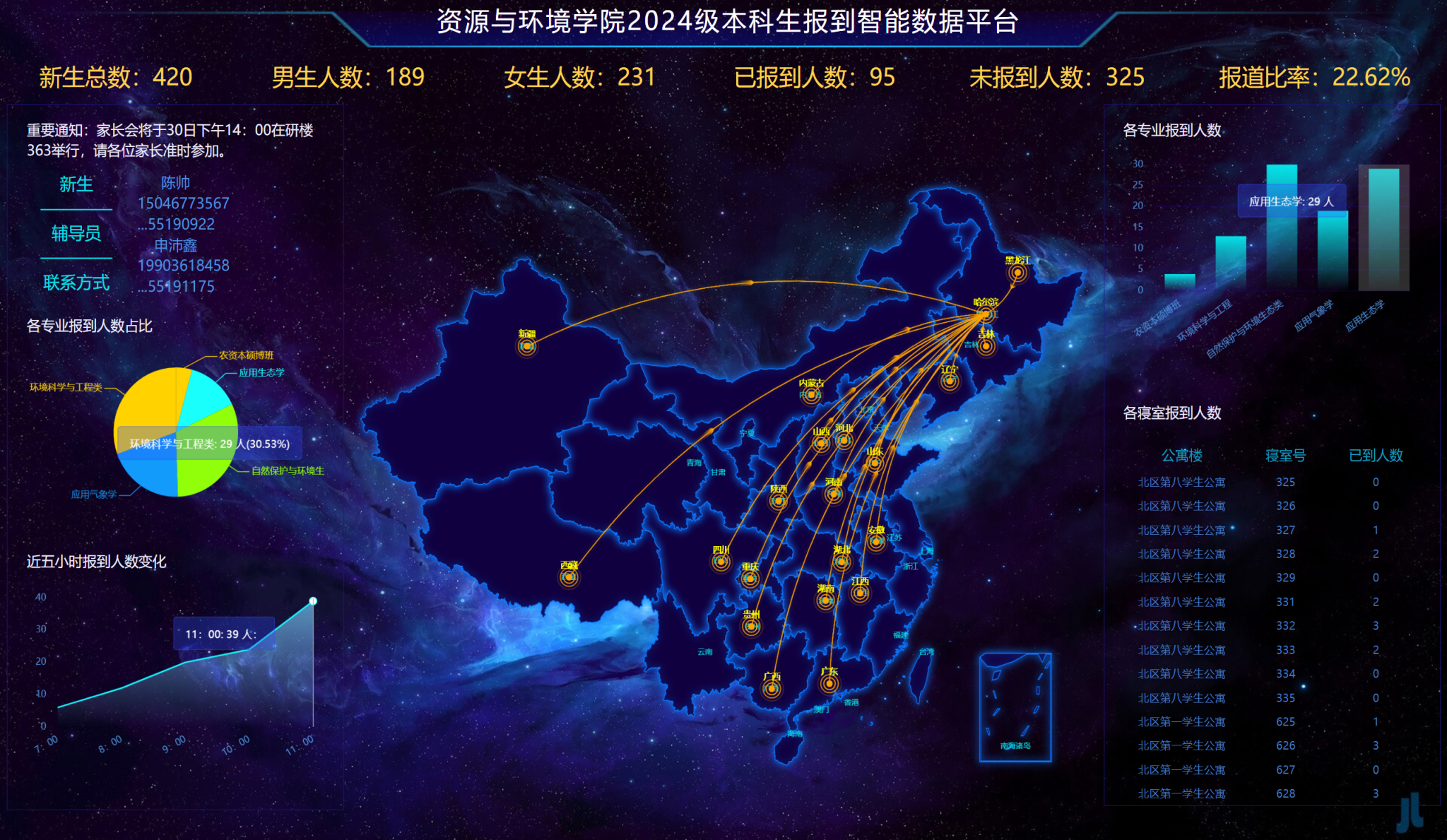 迎新现场,“三维立体折叠”耕读文化墙将绿水青山就是金山银山的生态文明理念与资环人服务三农事业、传承耕读精神、致力黑土保护的情怀展现得淋漓尽致。大屏幕上数字不断跃动,新生报到各项指标和进度一目了然,真正将“数字耕读”理念赋能迎新工作。涵盖“六分仪”辅导员工作室、耕读文化系列活动和2023届优秀毕业学子风采展等6张宣传板“旋转”交替,让新生沉浸式领悟耕读精神,上好第一堂“思政课”。