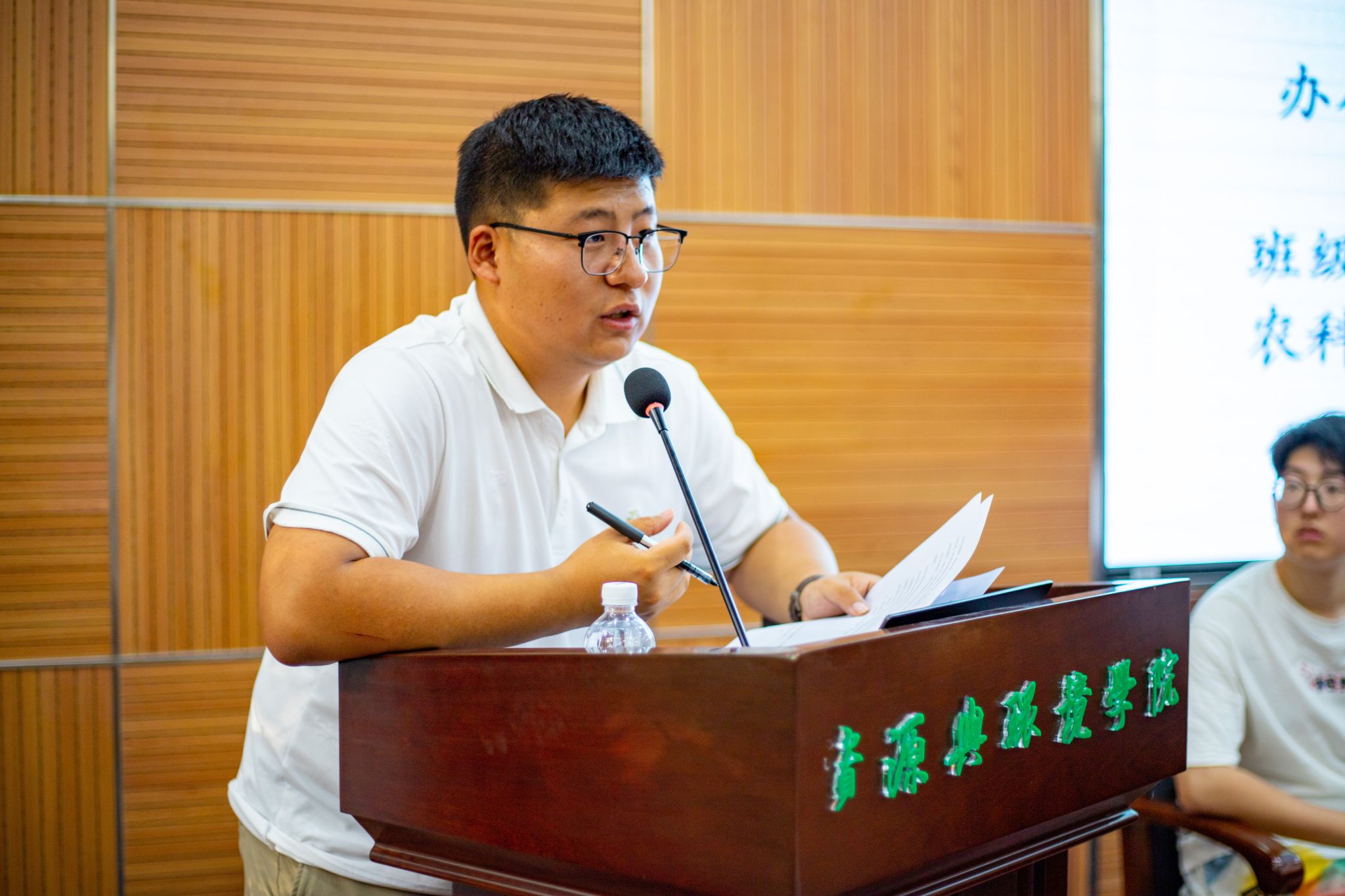 8月30日,学院召开新生家长会,学院党委书记刘刹、行政负责人曲建华、党委副书记许辉、副处级辅导员张李滨、科室负责人、各系系主任分别从学校、学院整体情况、学院学科发展及师资力量、学风教育和校园管理以及各专业升学、就业方向等方面进行了详细介绍。会上,与会老师结合学院办学理念和发展定位逐一回答了家长们的问题,帮助家长对学院为服务国家农业农村现代化和助力新质生产力高质量发展所制定的“新农科”人才培养计划有了进一步认识,切实搭建家校“互联网”,打通协力育人“最后一公里”。8月31日,学院召开新生见面会,新生辅导员陈帅、申沛鑫以习惯养成、学业发展、就业前景为切入点,引导学生树立合理的理想目标,激发自我探索兴趣,上好第一堂“规划课”。