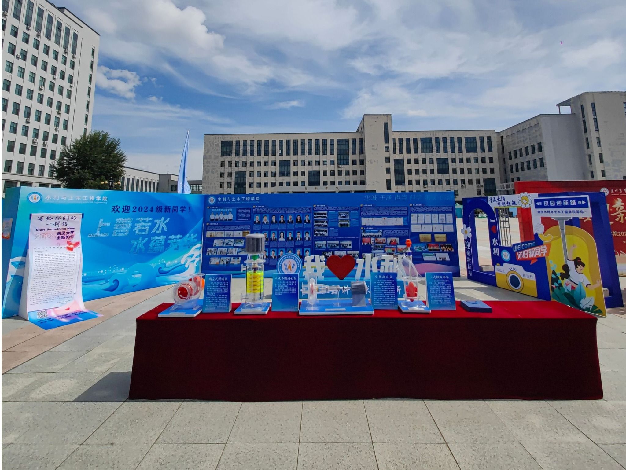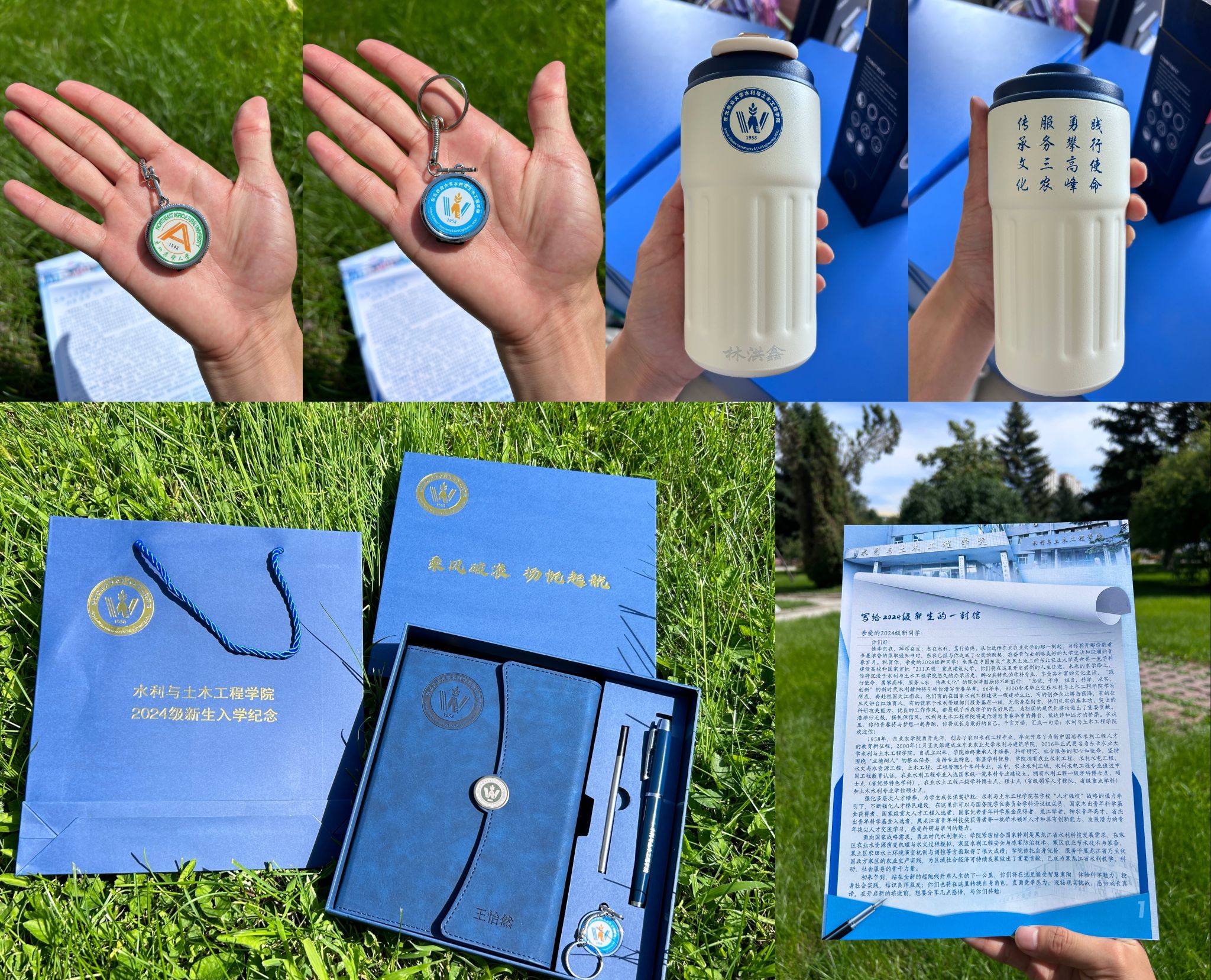 学院高度重视2024级学生迎新工作,提前谋划、统筹协调、全员参与,召开迎新工作专题会议、迎新志愿者招募及培训大会等,强化迎新工作的有序开展和顺利进行,围绕“关照、围绕、服务”学生,将便捷、暖心融入每个细节,对全流程进行了周密安排与部署。为充分展示学院文化底蕴和学科人才等特色优势,特别定制了学院风采展示墙、给新生的一封信、“上善若水 水蕴芳华”新生姓名墙、2024届本科生研究生就业升学光荣榜、拍照打卡留念墙、“仁智少年扬帆起,奋楫乘风破万里”迎新祝福标语等宣传展板,吸引新生及家长驻足观看,既增进了对学院的了解,又进一步坚定了选择学院学科专业的信心和决心。精心设计以校徽、院徽、院训、新时代水利精神和新生姓名为核心要素的笔记本、签字笔、U盘、保温杯等学生用品,组成新生专属文具套盒赠予新生。文具用品等以“蓝”为基调,彰显水利元素色彩和科技创新活力,将对新生的祝愿和期待融入精致的入学伴手礼,用“惊喜”为每一位新生上好“爱院如家”大思政课。