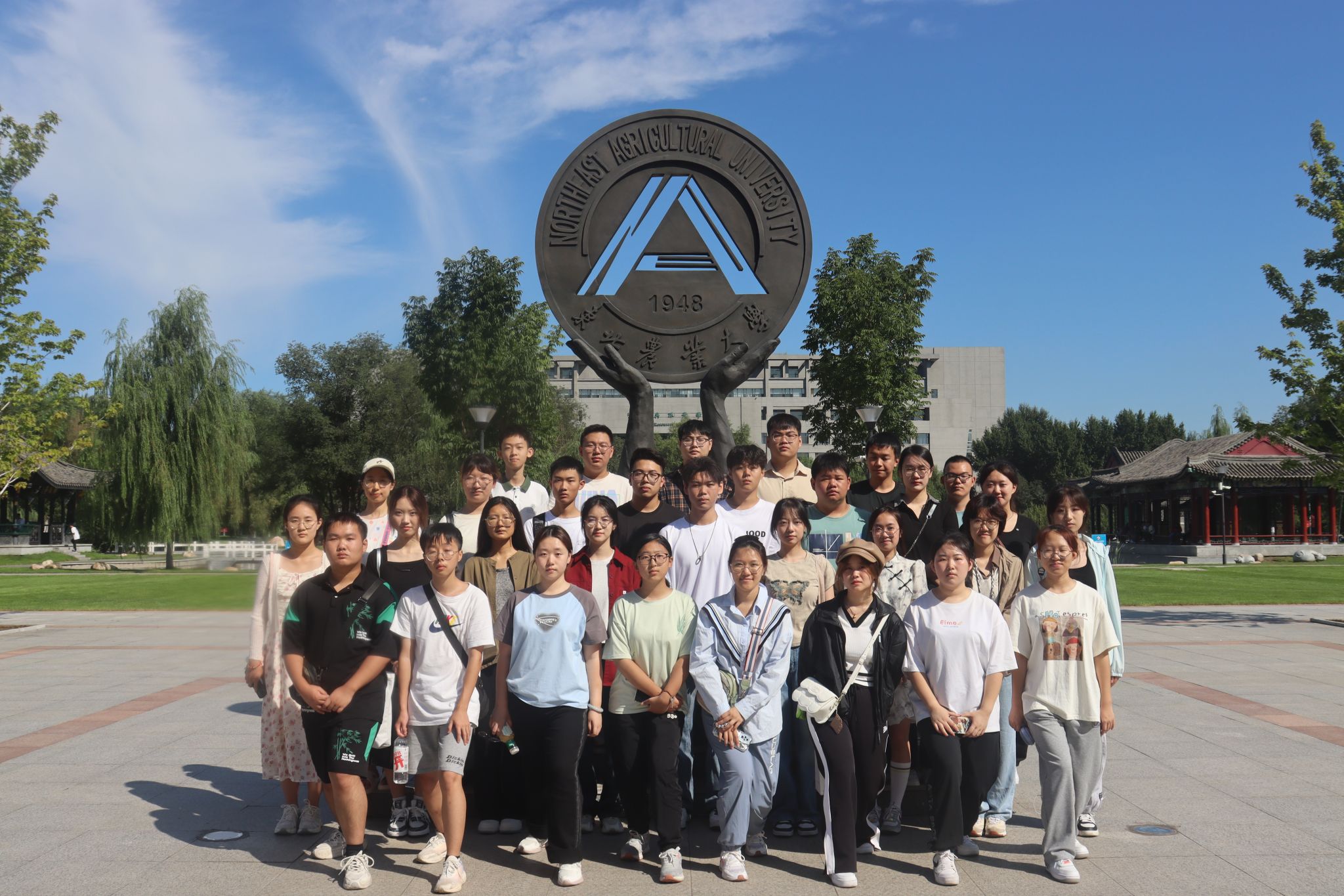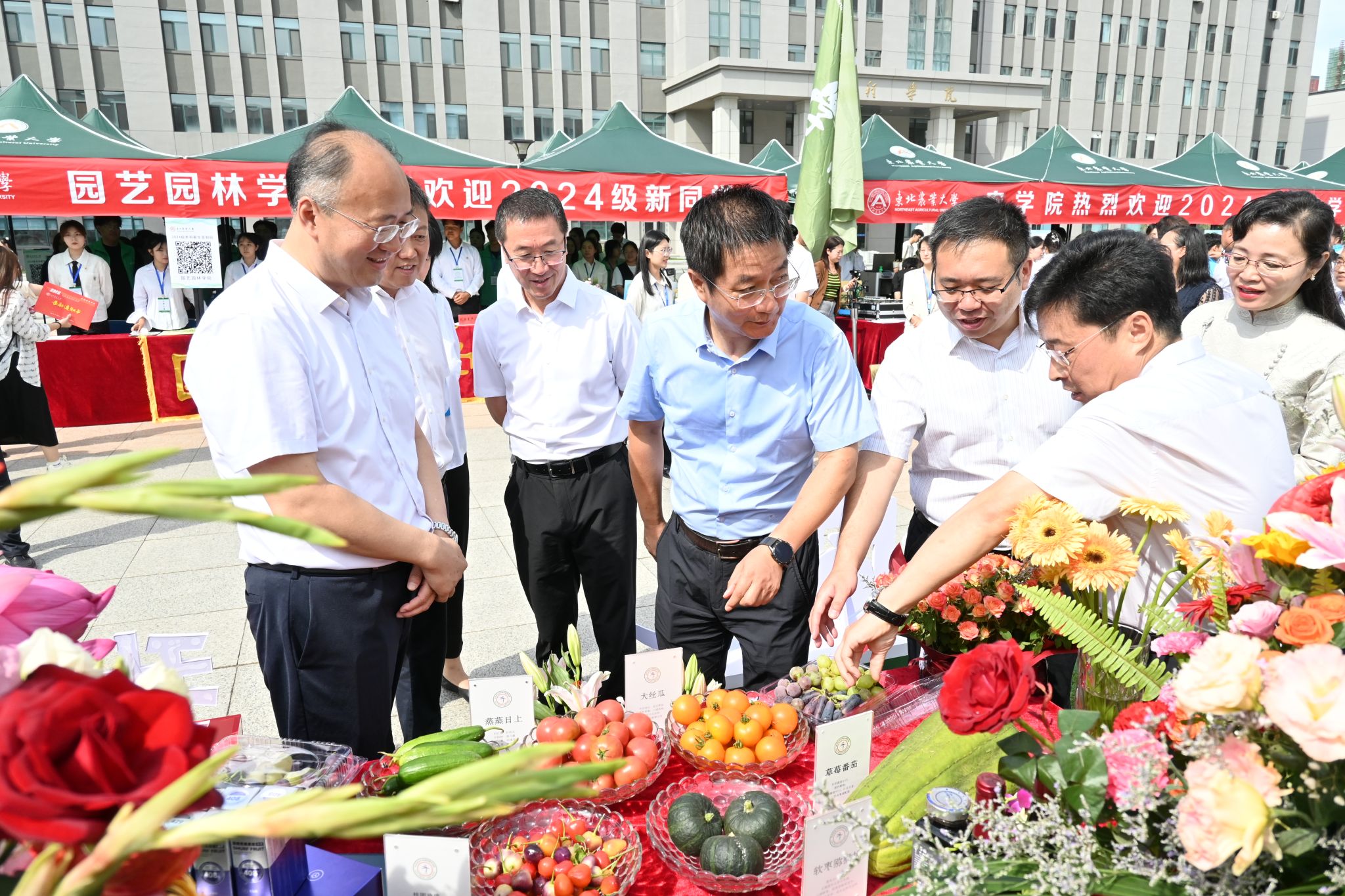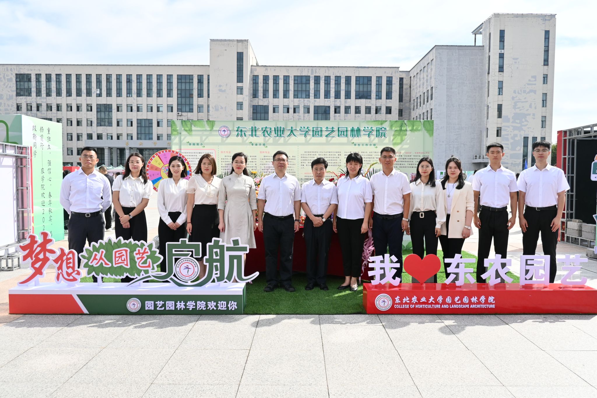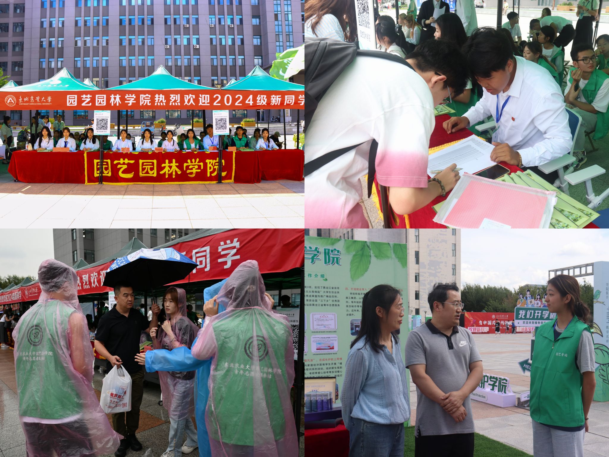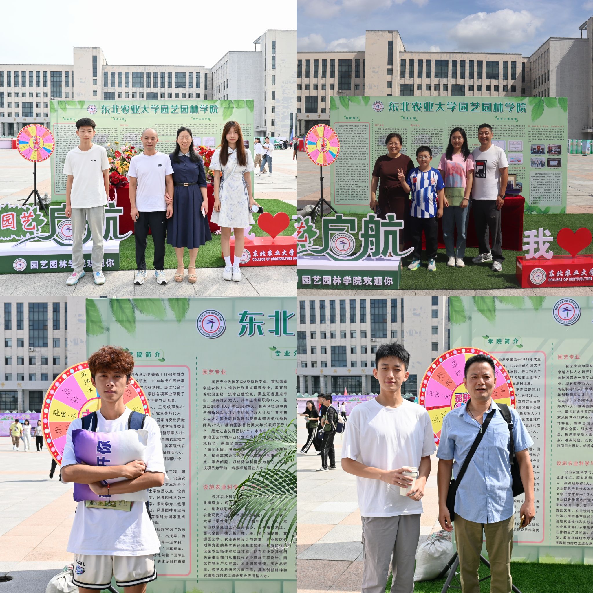 在迎新场地,迎新志愿者为前来报到的新生逐个签到确认、分发伴手礼,帮助新生引导路线、搬运行李、耐心答疑,确保新生顺利高效完成报到手续。新生报到后,纷纷在学院文化展示区合影留念,用镜头定格住在东农园艺的第一份美好记忆。