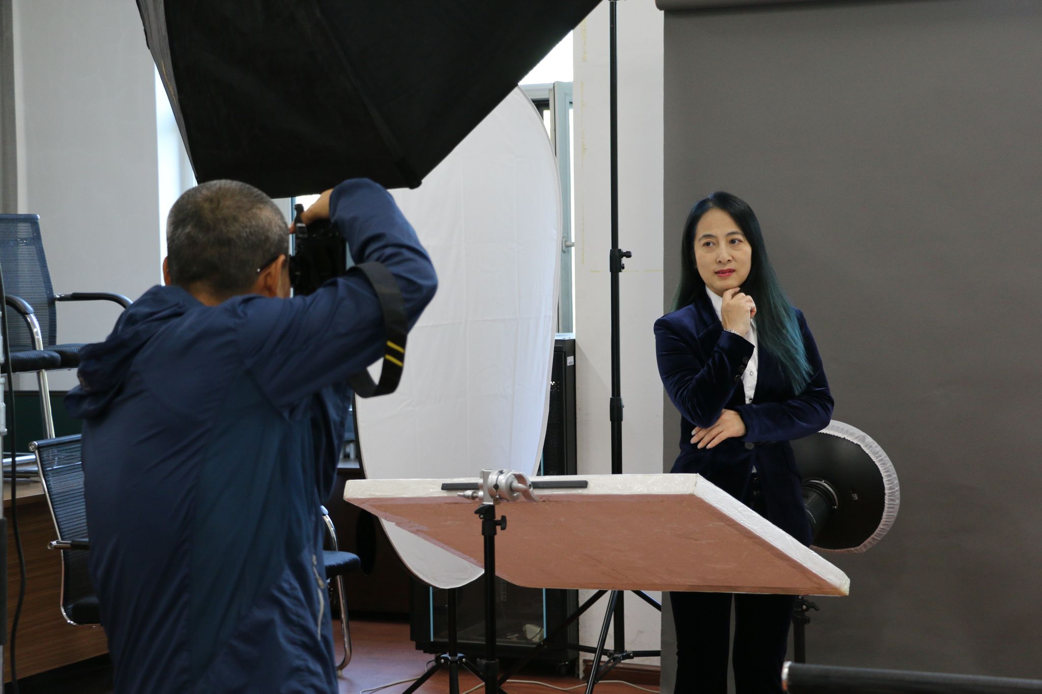 化妆师细致准备了妆造服务,让老师发型、服饰和妆容都呈现完美,工作人员精心布置了摄影棚,希望能让每个老师都能在镜头前尽显风华。拍摄现场,老师们精神焕发,脸上洋溢着笑容,在摄影师的指导下展现出独特的魅力和个性。