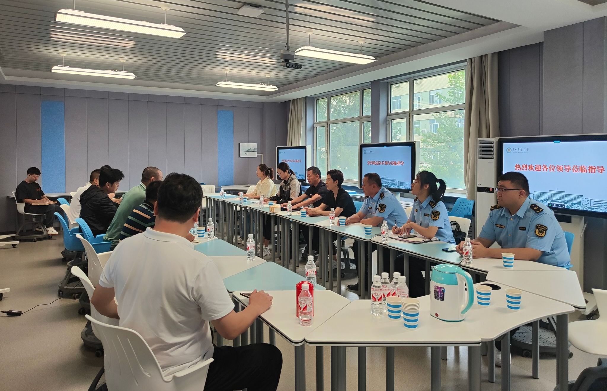 实验室管理处处长韩文灏代表学校对检查组的莅临指导表示热烈欢迎。他围绕实验室安全管理工作、特种设备管理制度建设、特种设备使用登记证和特种设备作业人员证办理情况、安全检查等方面进行了详细汇报。