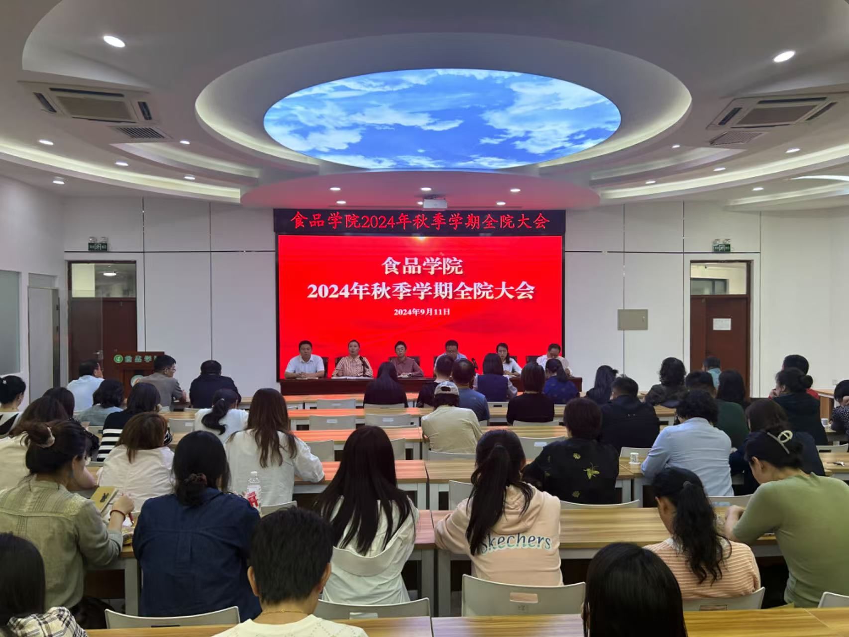 为进一步明确学院下半年重点工作任务,凝聚高质量发展共识,推动教育教学、科学研究及管理效能的加速升级,9月11日中午,食品学院在食品实验楼315召开秋季学期全院教职工大会,会议由学院党委书记潘俊波主持。
