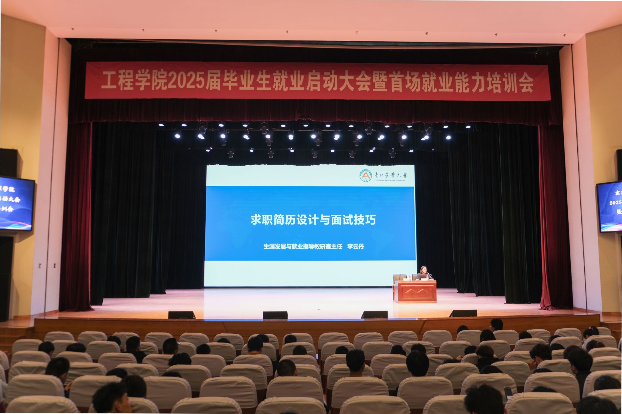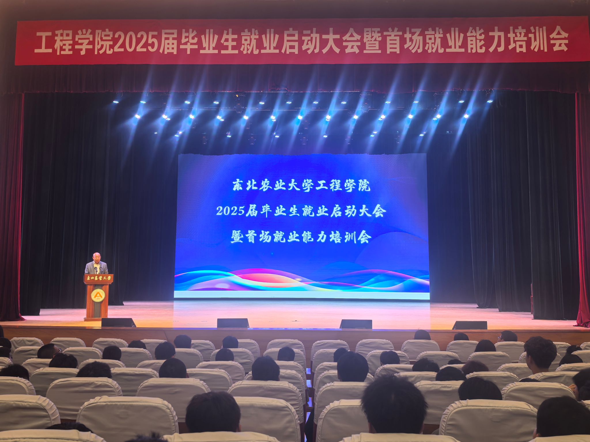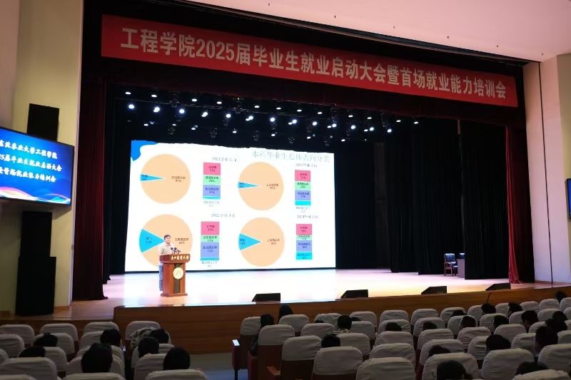 为深入贯彻落实党中央、国务院关于高校毕业生就业工作的决策部署,谋划推进学院2025届毕业生就业工作,助力2025届毕业生积极应对当前就业形势,把握毕业生秋招关键求职节点,提升毕业生求职能力,促进毕业生高质量充分就业。9月13日,工程学院在音乐厅举办2025届毕业生就业启动大会暨首场就业能力培训会。全体院领导、辅导员及2025届毕业生出席了此次会议,大会由工程学院党委书记黄步海主持。