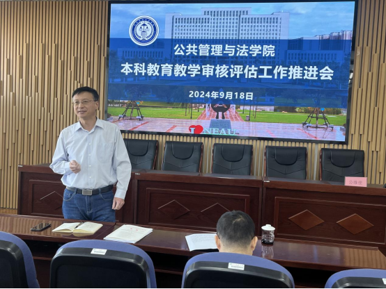 为进一步提升学院本科教育教学质量及教师教学技能,稳步推进学院本科教育教学审核评估工作,9月18日上午,公共管理与法学院在成栋楼1104报告厅召开本科教学技能提升专题培训暨本科教育教学审核评估工作推进会。公共管理与法学院领导班子及全体教师参会,会议由学院副院长黄善林主持。