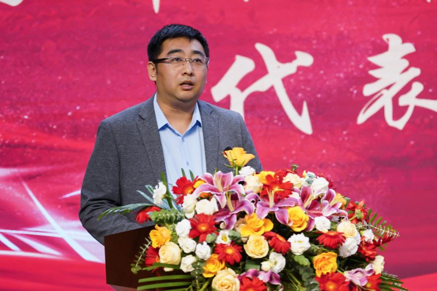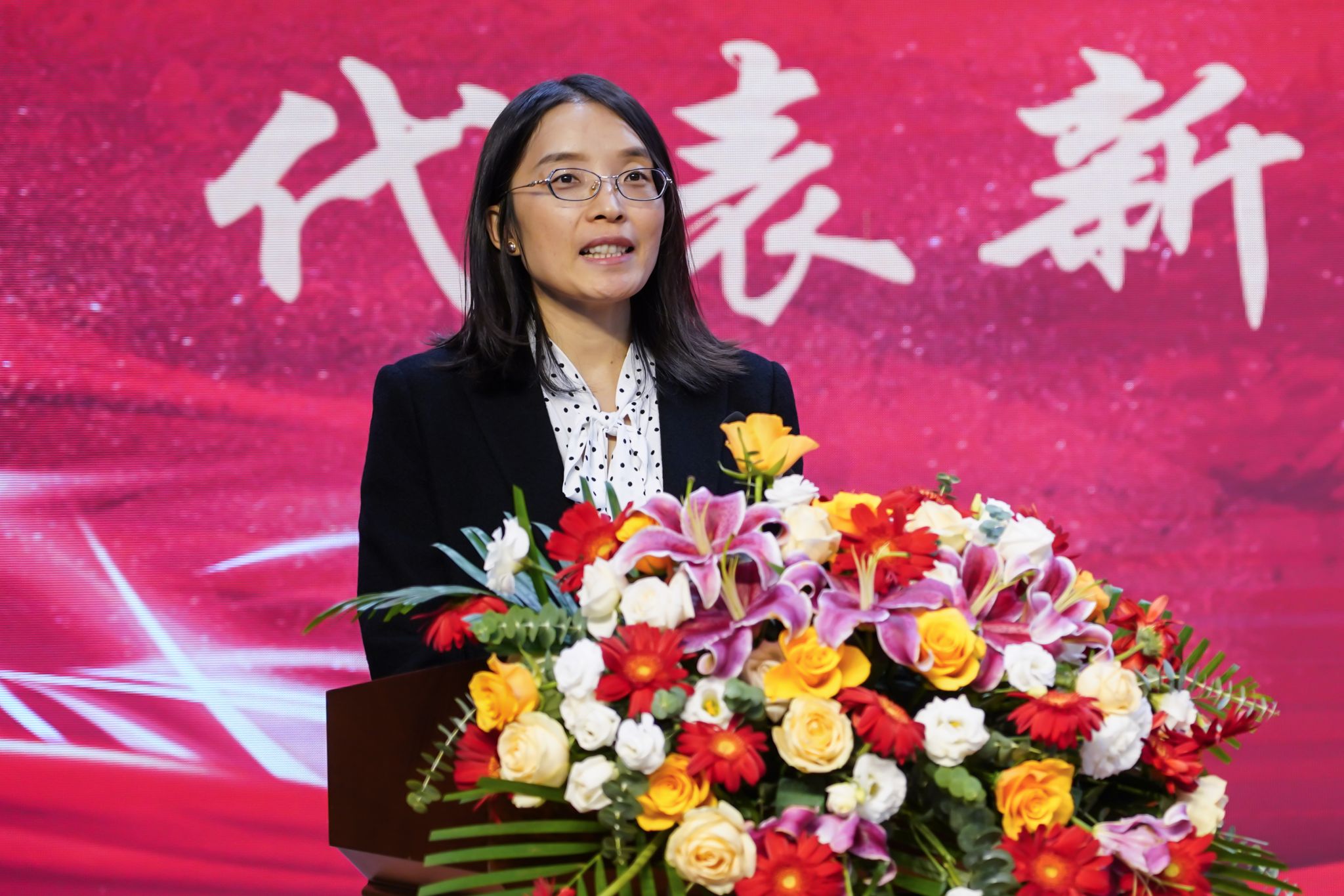 动医2481班班主任王丽代表新生班主任发言。她希望,刚迈入大学的新生在兴奋激动的同时能思考未来、坚持学习、学会自律、融入集体,并祝福同学们在大学岁月中,在知识积累中追逐梦想、实现价值。