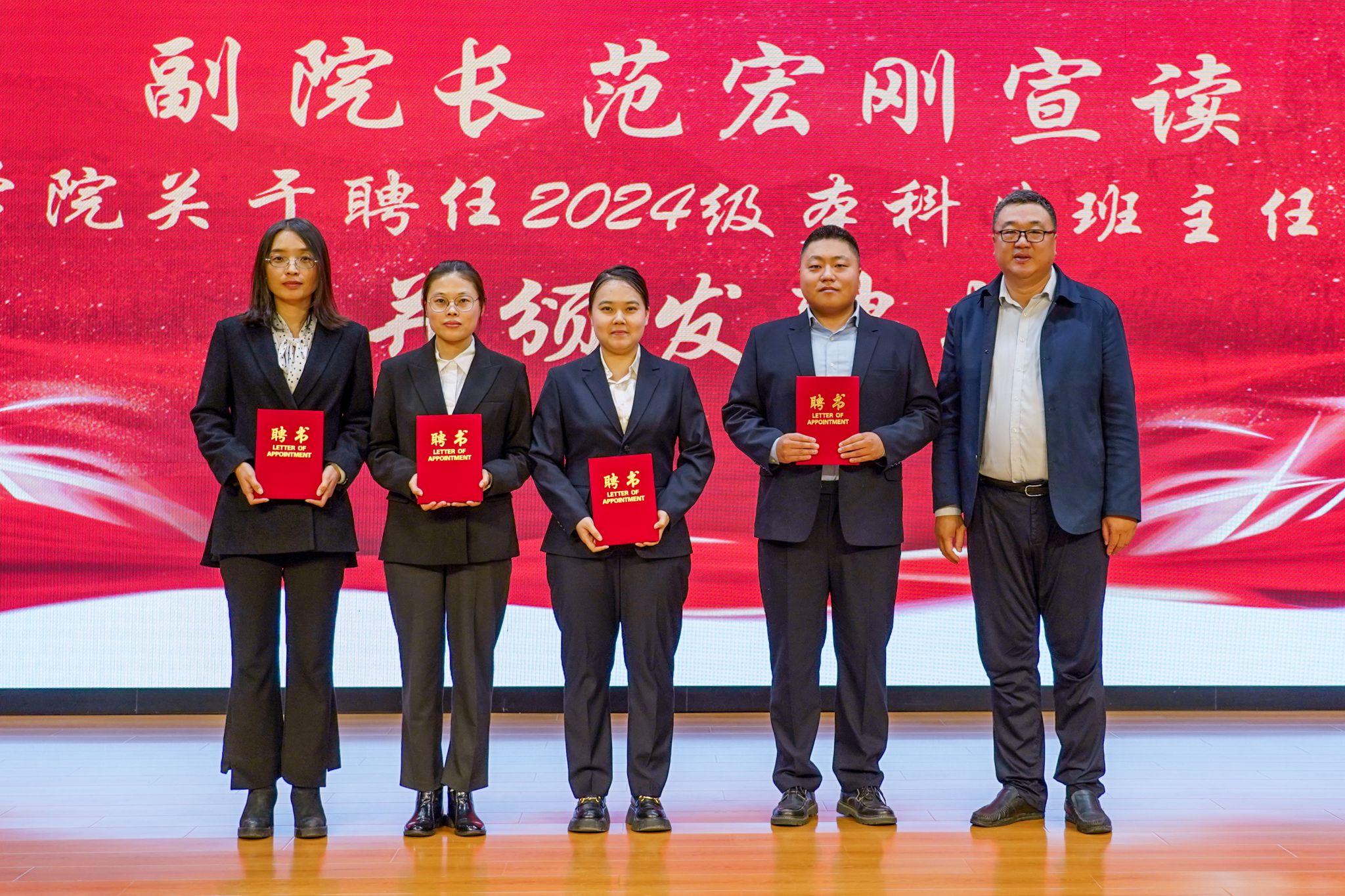 为进一步加强高校思想政治工作,学院聘任7名专业课教师担任本科新生班主任。会上,学院副院长范宏刚宣读《动医学院关于聘任2024级本科生班主任的决定》,并为班主任颁发聘书。