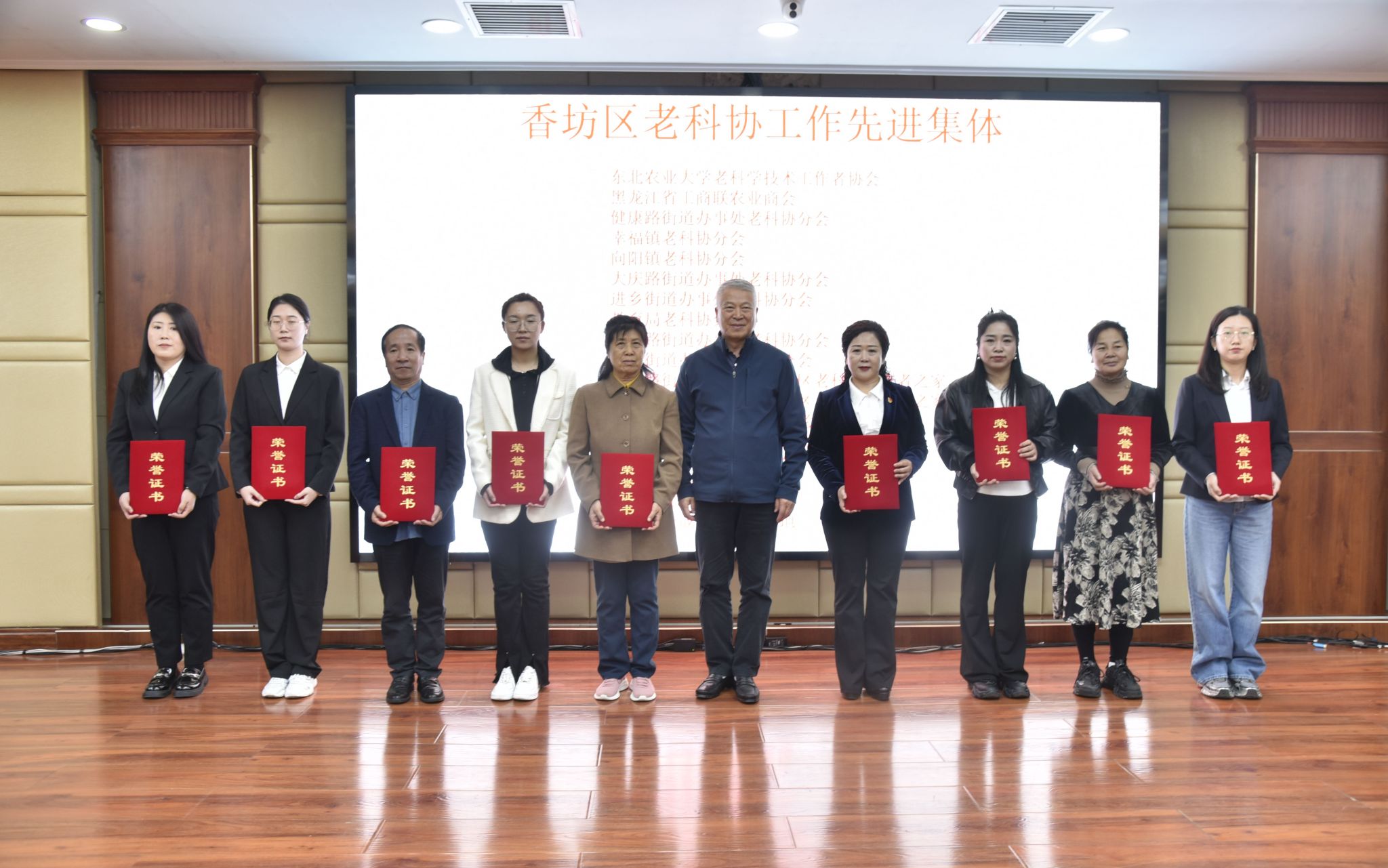 东北农业大学老科协荣获老科协工作先进集体;林果山、张永忠、唐志权、张永根荣获优秀老科技工作者荣誉称号;离退休工作处副处长王雷、李晴荣获优秀老科协工作者荣誉称号,九名在岗教师荣获优秀科技工作者荣誉称号。学校老科技工作者杨兴武、程涛、魏湜、李景富、陈伊里等教授被聘为香坊区助力乡村科技振兴发展专家,并颁发了聘书。