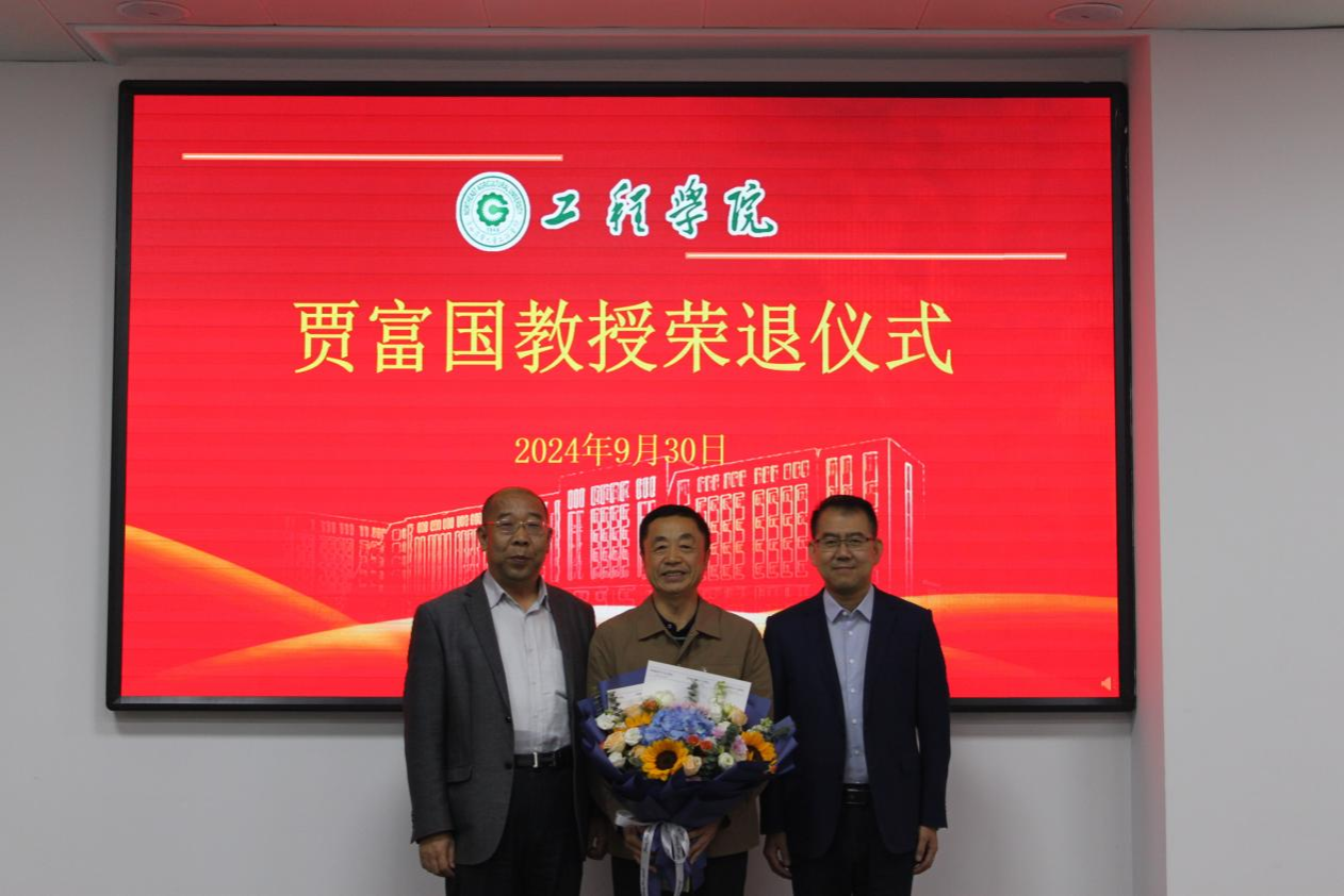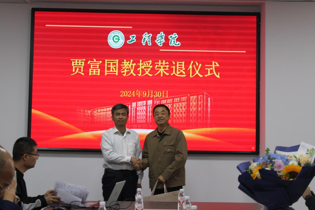 国庆节前夕,为进一步营造尊师重教良好氛围,增强教师职业荣誉感,致敬临近退休的老教师为学院建设发展所作的贡献,激励青年教师接续奋斗,薪火相传,9月30日上午,工程学院举办贾富国教授荣退仪式。学院领导班子成员,荣退教师、教师代表以及2024年新入职教职工参加了荣退仪式和座谈交流。荣退仪式由学院党委书记黄步海主持。