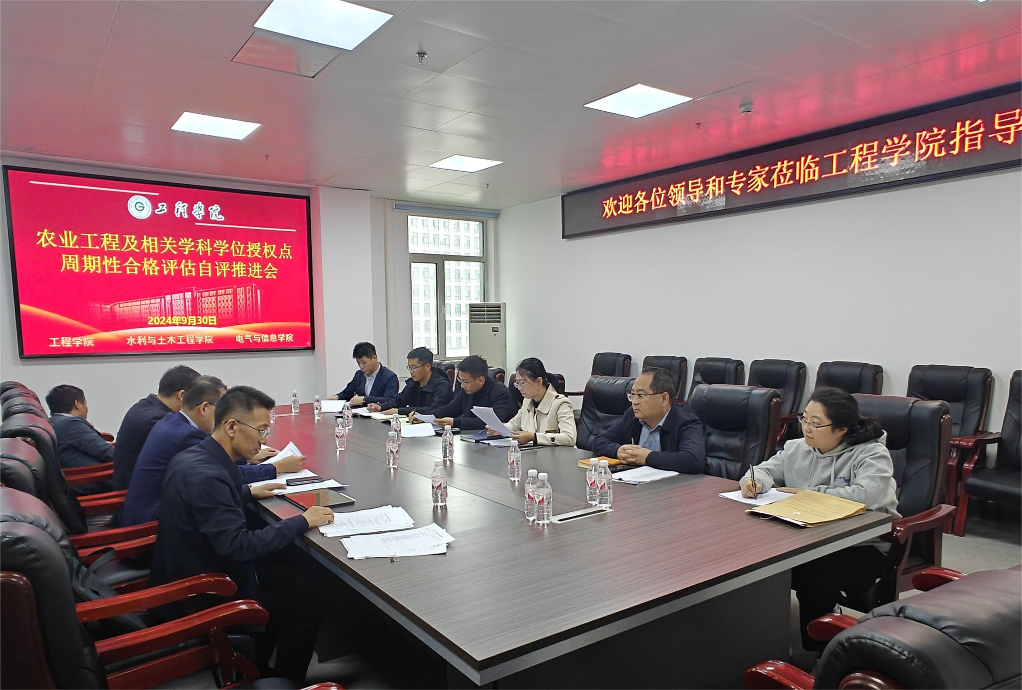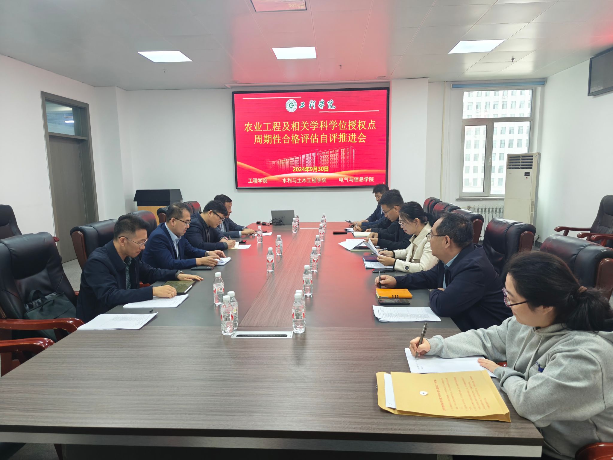 为进一步做好2020-2025年学位授权点周期性合格评估自评工作,9月30日下午,工程学院、水利与土木工程学院和电气与信息学院在工程学院451会议室召开东北农业大学农业工程一级学科博士学位授权点周期性合格评估自评推进会,工程学院行政负责人李岩、水利与土木工程学院院长李茉、电气与信息学院行政负责人戴百生,水利与土木工程学院副院长刘继龙、电气与信息学院副院长张喜海、工程学院党委副书记孙涛、副院长王金峰及相关教师和研究生秘书等参加会议。会议由李岩主持。