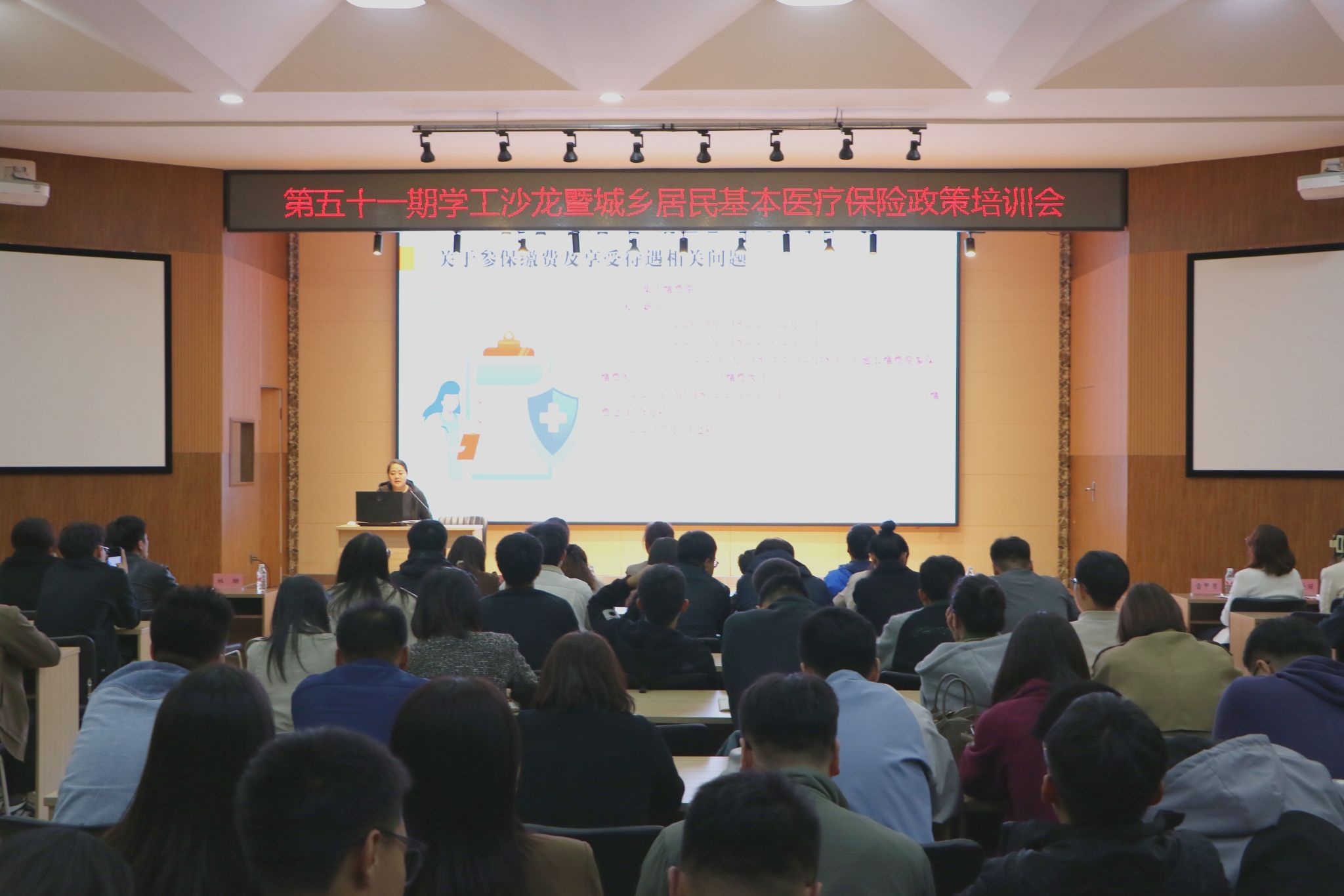 为落实学校学习培训“三年行动”工作部署,进一步推动“岗位大练兵”活动扎实开展,切实提升辅导员业务能力水平,10月10日下午,学生工作部(处)在音乐厅109报告厅举办第五十一期学工沙龙暨大学生城乡居民基本医疗保险政策培训会。本次培训特邀哈尔滨市医疗保障服务中心内审部副部长杜珊、结算部副部长赫晓亮作为主讲嘉宾。全体辅导员参加,培训会由学生工作部副部长刘钊熠主持。