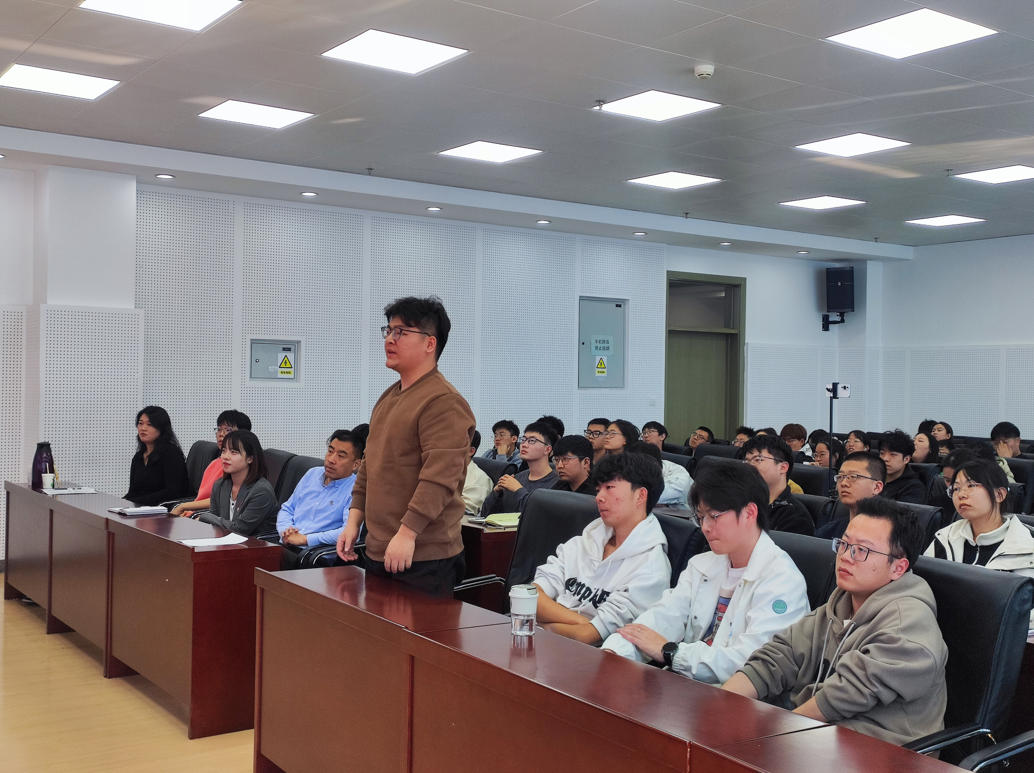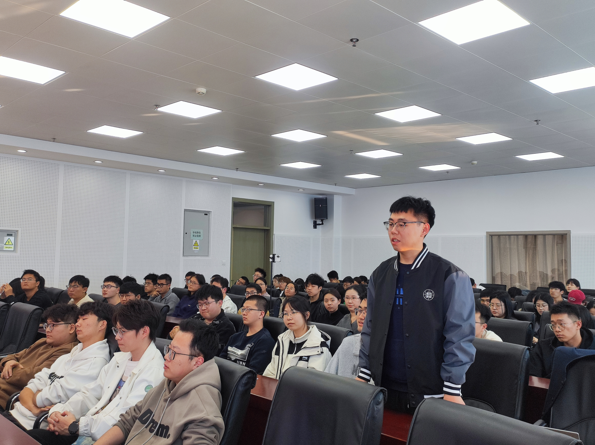 在互动环节,贾富国教授耐心细致地为同学们答疑解惑,从科研生活到学术理想,他以自己为例,鼓励同学们潜心学习、打牢基础、厚积薄发。