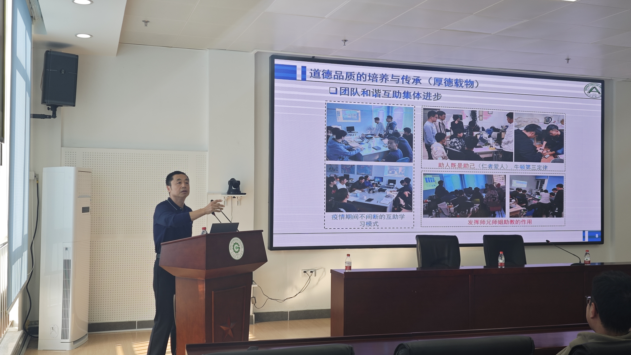 贾富国教授以“驾驭时代的风帆”为主题,从时代的呼唤与困境、理解父母的苦和难、道德品质的培养与传承、科研的切入点、科研实践与方法和实验室生活文化氛围六个方面进行了分享。他指出,高素质人才是推动国家前行的关键力量,希望同学们在踏入科研领域的第一步,要铭记父母的辛勤与不易,将安身立命、孝养父母、报效祖国作为指引人生的明灯,勉励与会同学不仅要追求知识的广度与深度,更要注重提升品德修养,努力成为对社会有贡献的人。