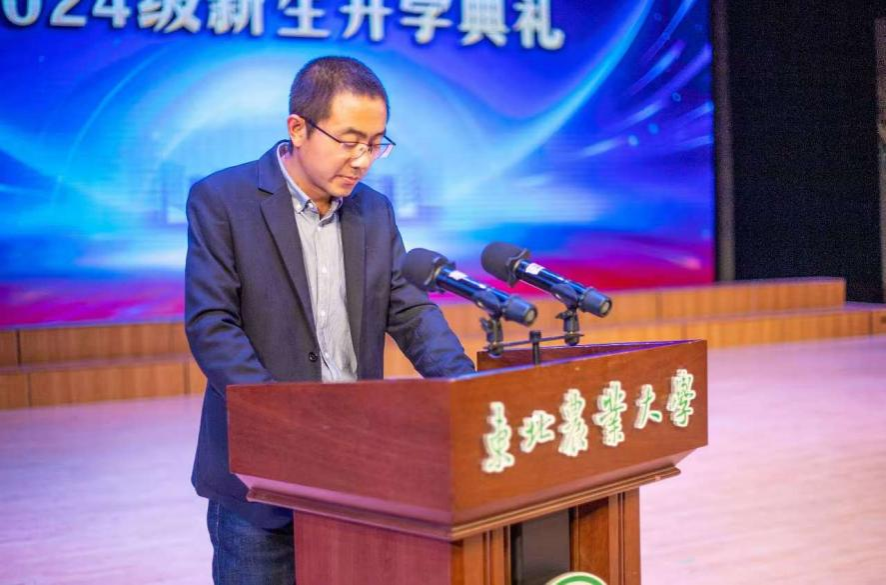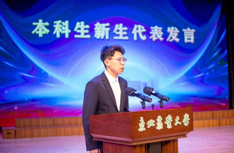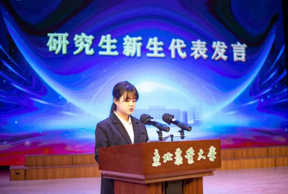 研究生新生代表郭梦冉、本科生新生代表秦子先依次发言,他们承诺,作为东农奔涌着的“后浪”,将在“东农精神”下担起责任,在“耕读教育”中锤炼专业本领,敢于迎接挑战,创造东农崭新篇章。