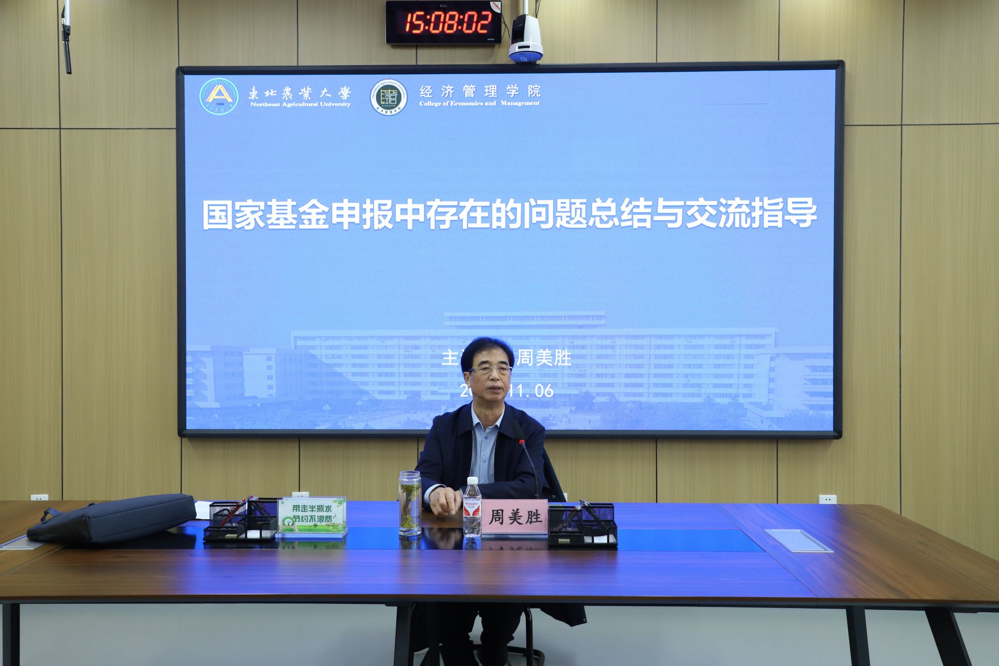 学院邀请周美胜针对国家基金申报中存在的问题同与会教师进行了深入交流。周美胜从国家政策解读、研究选题确定、项目申请书撰写、研究重点与难点的把握、研究特色与创新等方面进行了细致的讲授,对项目书撰写技巧和注意事项进行了详细剖析。周美胜强调,教师应当关注社科研究前沿动态和热点问题,结合自身的专业背景和兴趣,选择国家战略所需、具有重要现实意义的研究选题。同时,要遵循项目书的撰写要求和基金申请规范,确保自己的科研成果能够得到更好的认可和支持。