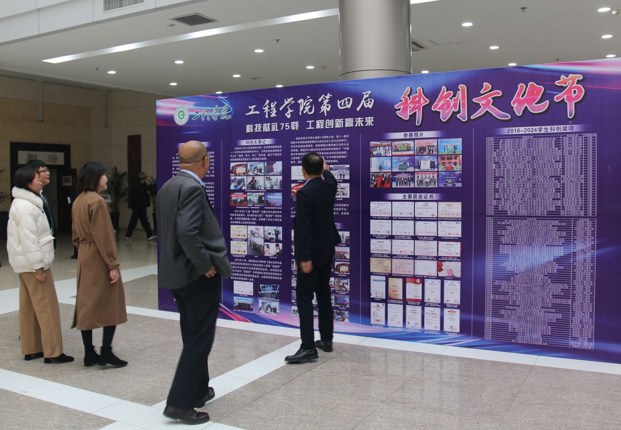 活动现场,设置了工程学院科技创新协会展板,展现学生科技创新成果。参加启动仪式的领导老师参观各路演展位,了解科创作品相关内容,充分肯定各协会取得的成果。