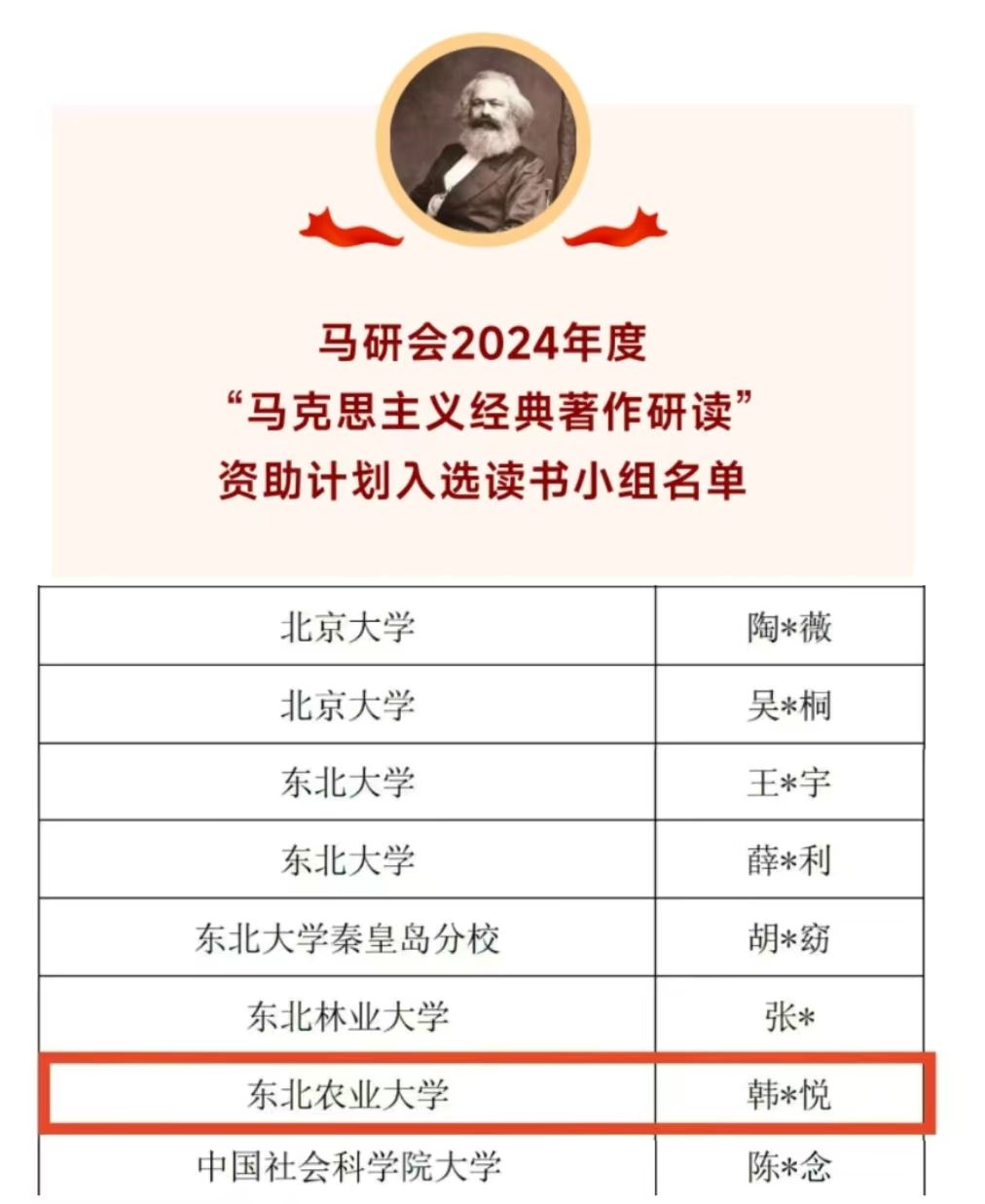 近日,中国高等教育学会马克思主义研究分会(以下简称“马研会”)2024年度“马克思主义经典著作研读”资助计划名单公布。文理学院“《习近平著作选读》读书小组”成功入选,这是东北农业大学读书小组首次入选马研会“马克思主义经典著作研读”资助计划。