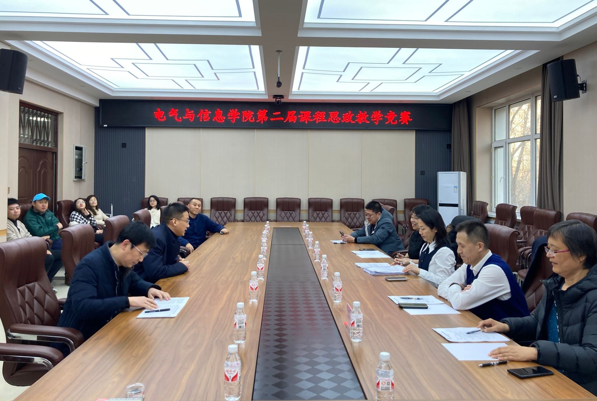 为推进课程思政建设,落实立德树人根本任务,多渠道提升教师课程思政教学能力,近日,电气与信息学院在电信楼219会议室举办了第二届课程思政教学竞赛。马克思主义学院院长许静波,水利与土木工程学院教授刘东,生命科学学院教授徐永清,电气与信息学院教授房俊龙、孙红敏担任竞赛评委。电气与信息学院行政负责人戴百生、副院长李晓明及部分青年教师观摩比赛,比赛由李晓明主持。
