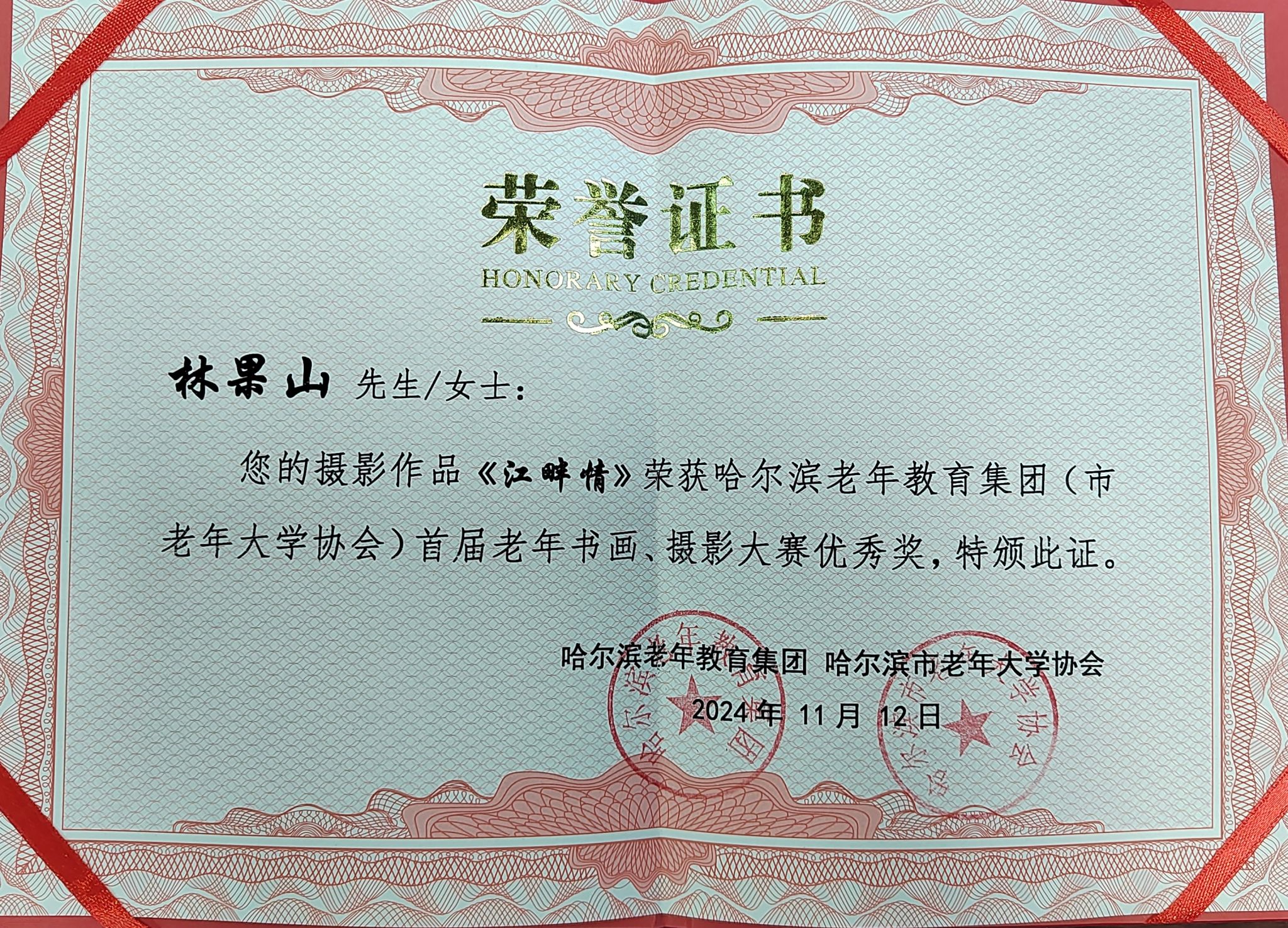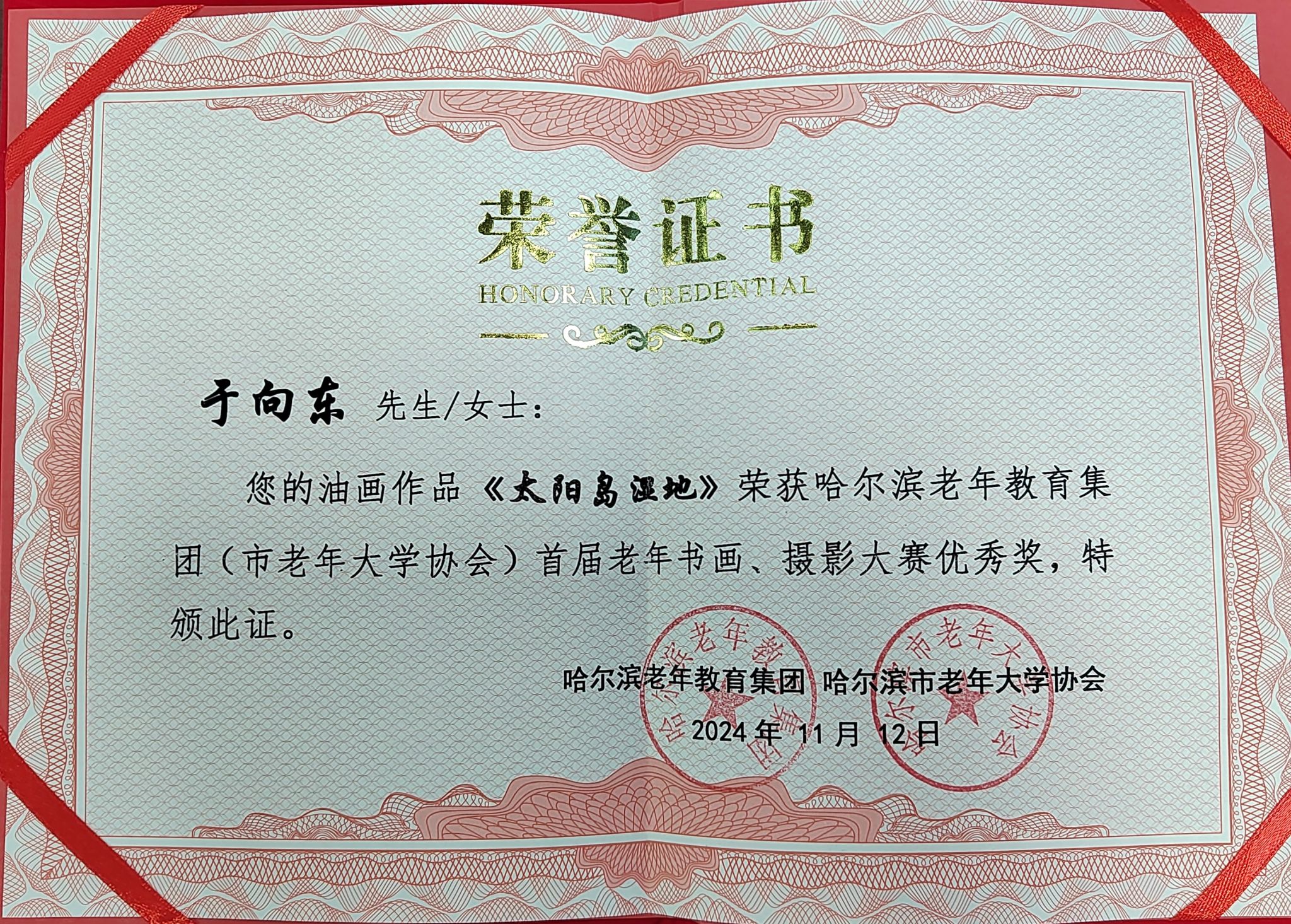 在喜迎亚冬会之际,东北农业大学退休教师在哈尔滨市老年教育集团(市老年大学协会)首届老年书画、摄影大赛中大放异彩。他们用笔墨与镜头记录银色年华,展现东农风貌,彰显冰城风采。省老年科技大学东北农业大学分校获组织奖。林果山老师的摄影作品《江畔情》和于向东老师的油画作品《太阳岛湿地》分别荣获摄影、书画作品优秀奖。
