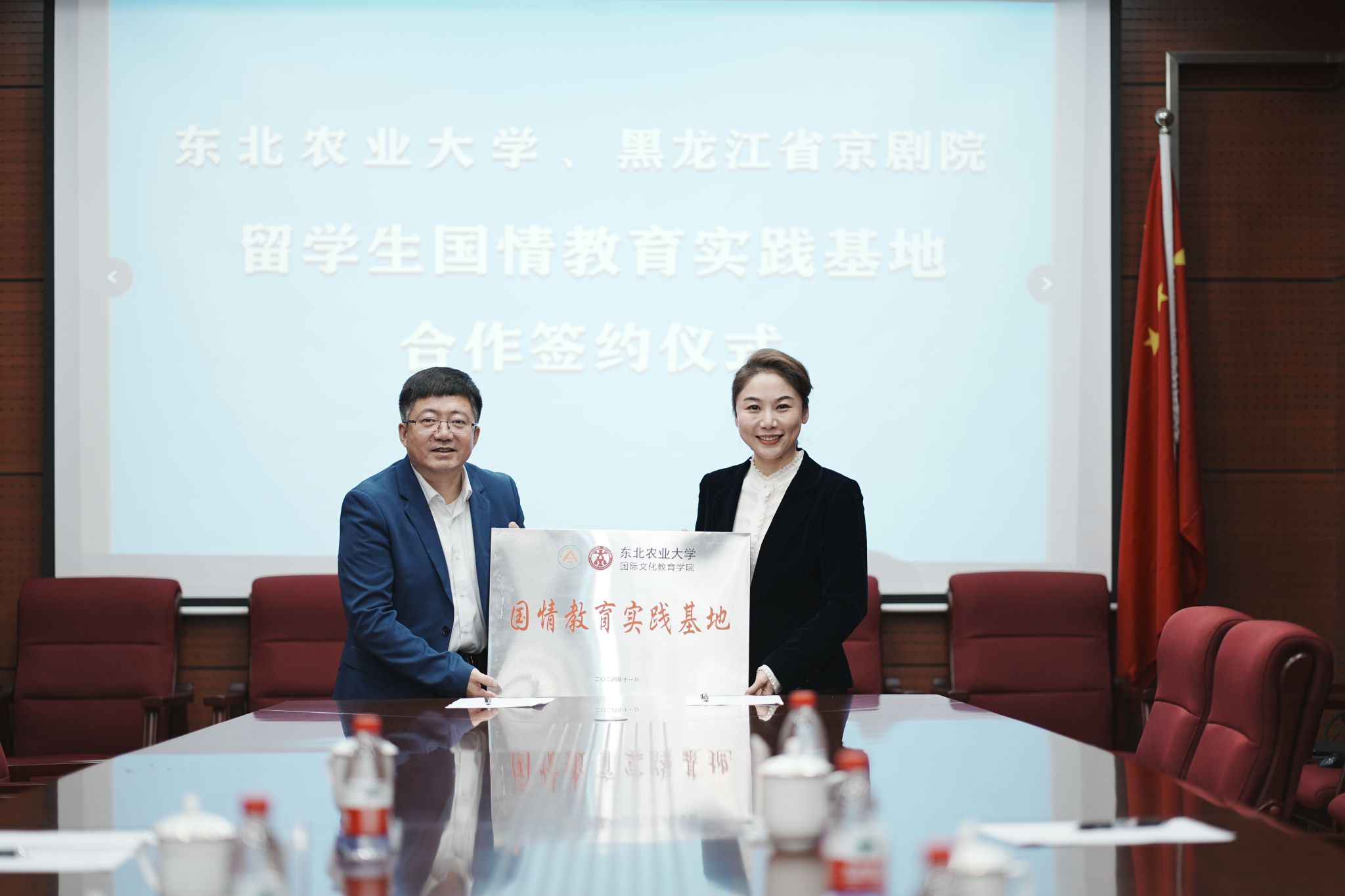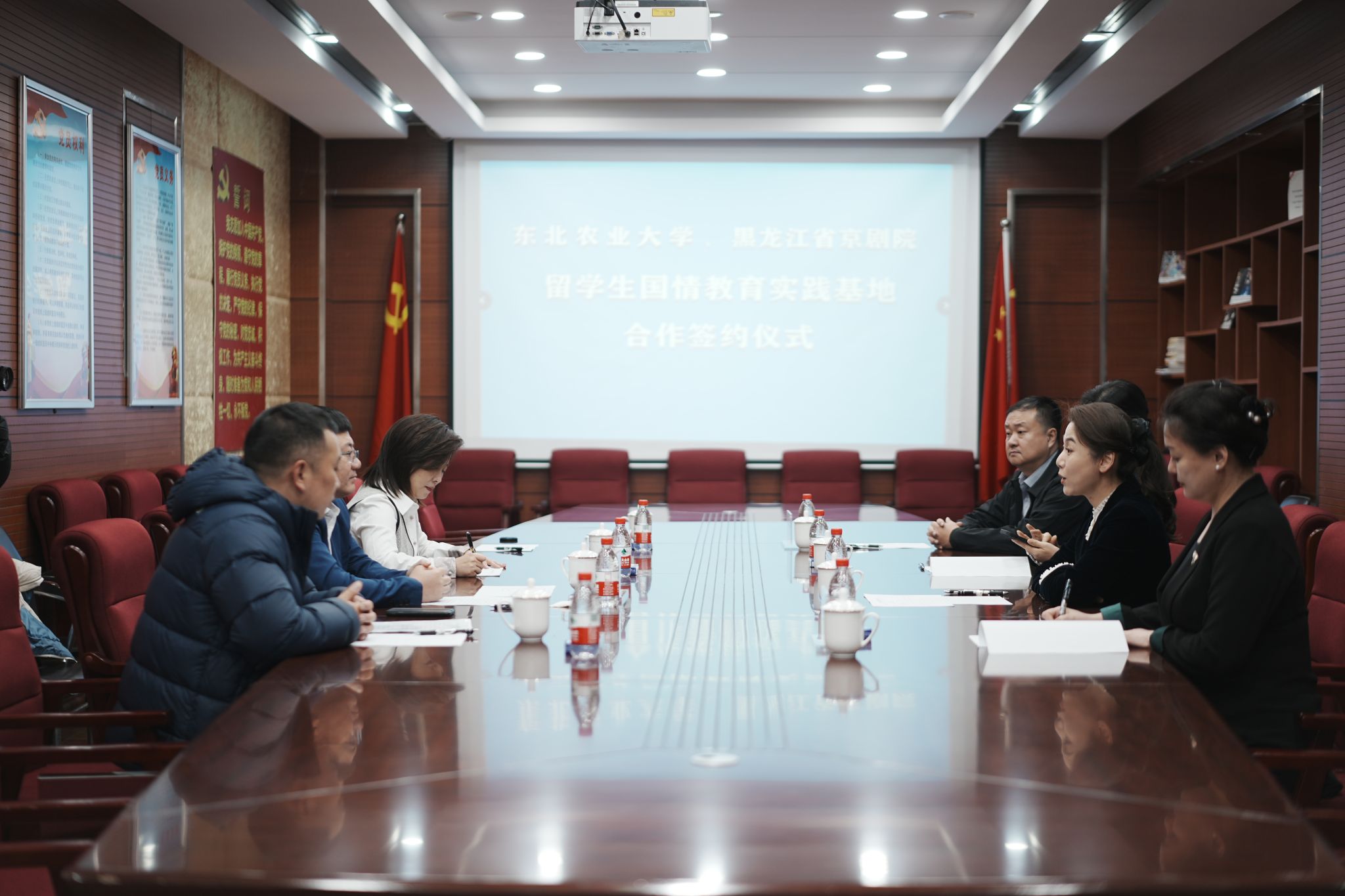 11月26日,国际文化教育学院与黑龙江省京剧院留学生国情教育实践基地签约仪式在黑龙江省京剧院举行,国际文化教育学院副院长胡长伟、传统文化教学部主任李法玲、留学生办公室主任朱聃、留学生辅导员姜秋雪,黑龙江省京剧院副院长张欢、马佳,业务办主任陆阳、艺术室主任黄丽珠出席签约仪式。