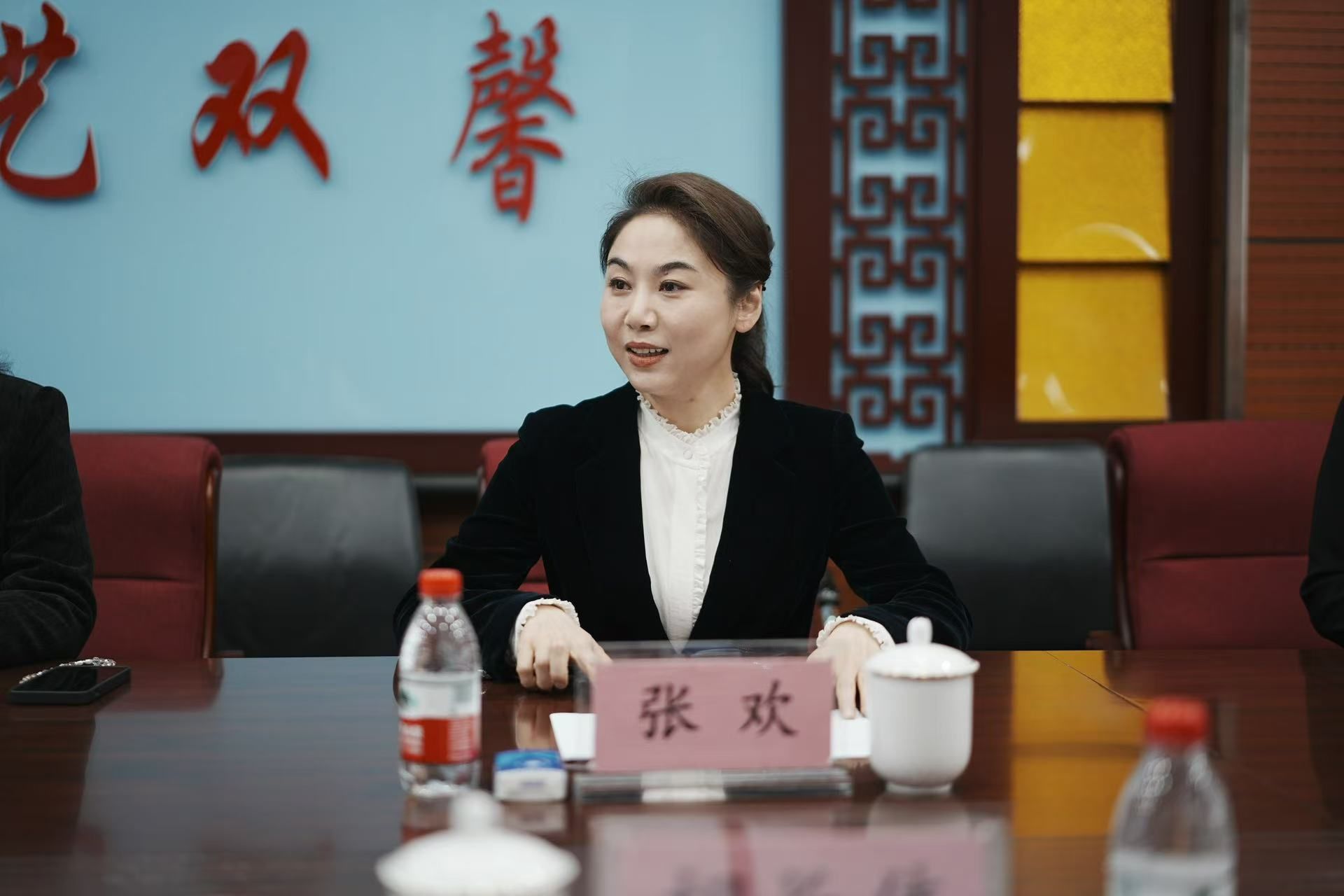 张欢在座谈会上分享了省京剧院在传承京剧艺术方面的经验。胡长伟介绍了学校近年来在留学生国情教育方面的探索与实践。双方就未来合作的方向和内容交换了意见,并重点围绕如何将京剧融入留学生的国情教育课程、如何为留学生提供沉浸式的京剧体验以及如何利用基地资源推动京剧文化传播等议题展开探讨。