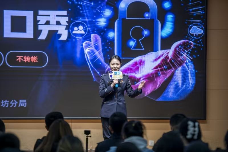 六名民警采用幽默诙谐的脱口秀形式,以真实案例作为素材,结合自身经历普及宣传反诈知识,讲述反诈故事。活动中,民警与学生们进行了积极的互动问答。