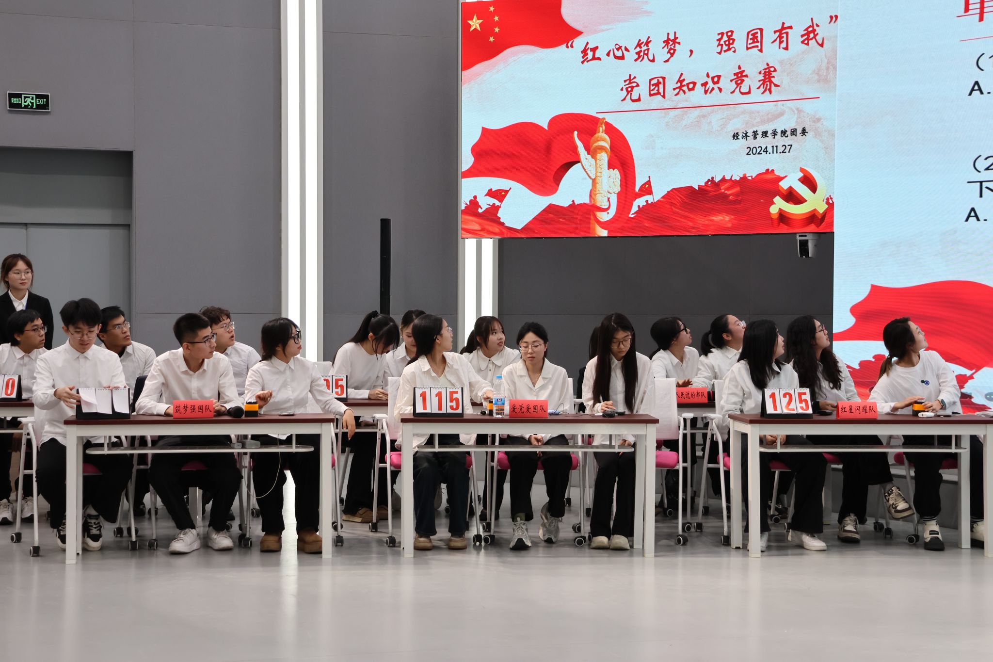 比赛中,选手们充分展示了扎实的知识储备和强大的团队凝聚力,彰显了经管学子求真务实、积极进取的精神风貌,为观众带来一场精彩生动的党团知识学习盛宴。
