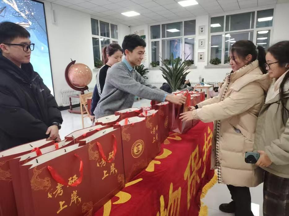 为舒缓考研学子的复习压力、提振士气,助力考研学子坚定信心,12月11日,植物保护学院开展“礼寄考研路,金榜题名时”考研慰问活动。学院党委书记赵东旭、副院长李秋月、副处级辅导员张贺、毕业班辅导员宿亮为2025届考研学子送上暖心礼包、温暖祝福,助力考研学子研冬折桂。