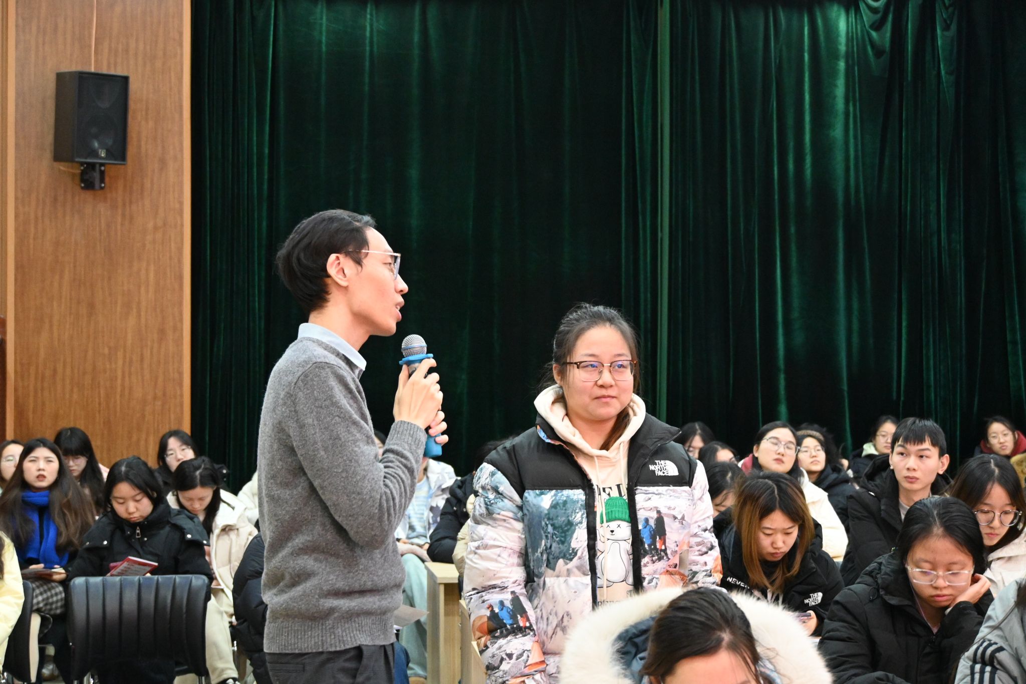 宣讲结束后,设置了互动与抽奖环节,同学们踊跃提问,关心三元食品的企业员工待遇与未来晋升路径,杨世言给予了耐心细致解答,现场气氛热烈。