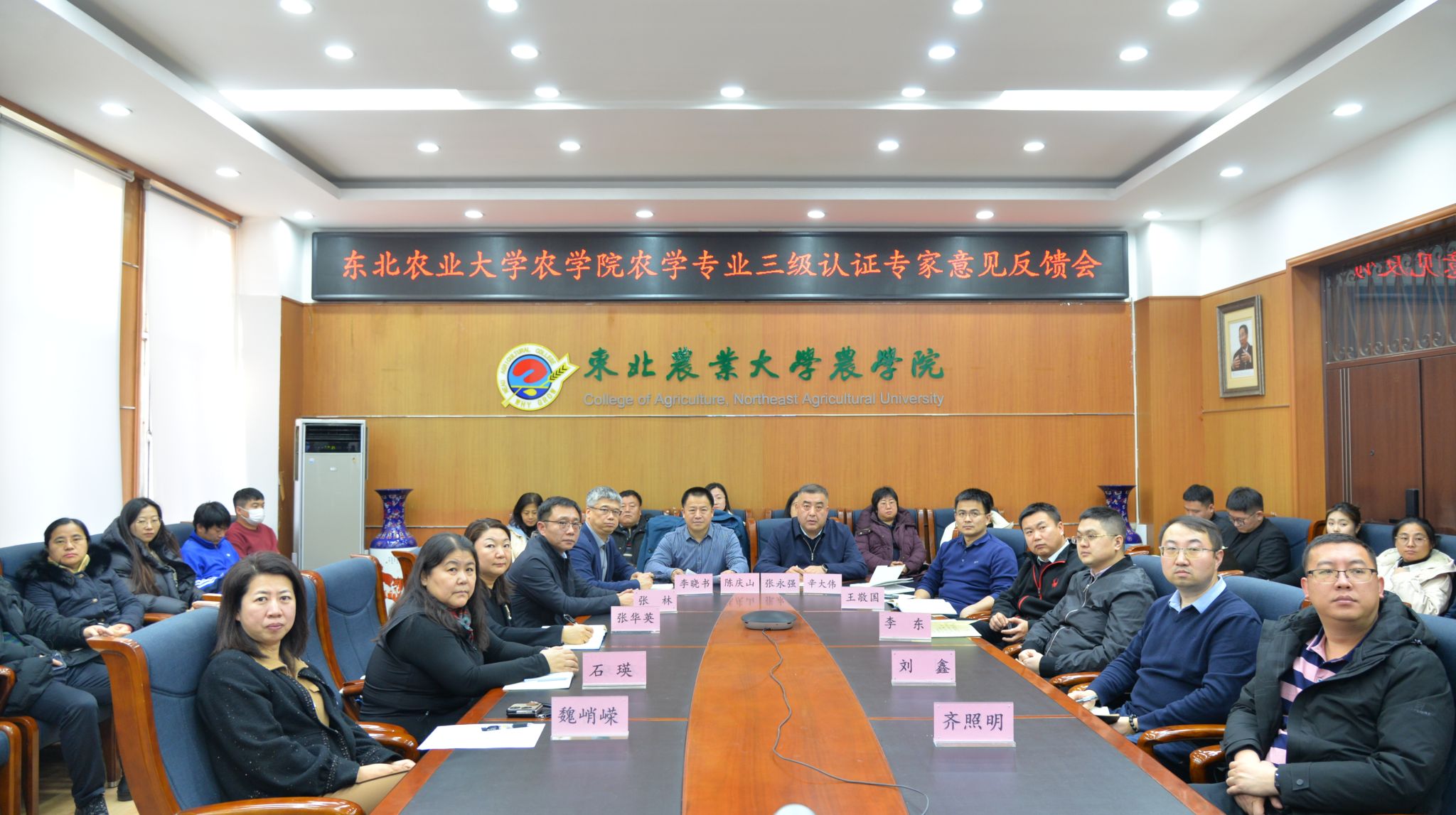 12月16日下午,农学院召开农学专业三级认证专家意见反馈会,专家组成员线上参会。副校长陈庆山,教务处处长张永强,农学院党委书记李晓书,行政负责人辛大伟,党委副书记张华英,副院长张林、王敬国,相关专业负责人,专业教师及辅导员代表线下参加会议。