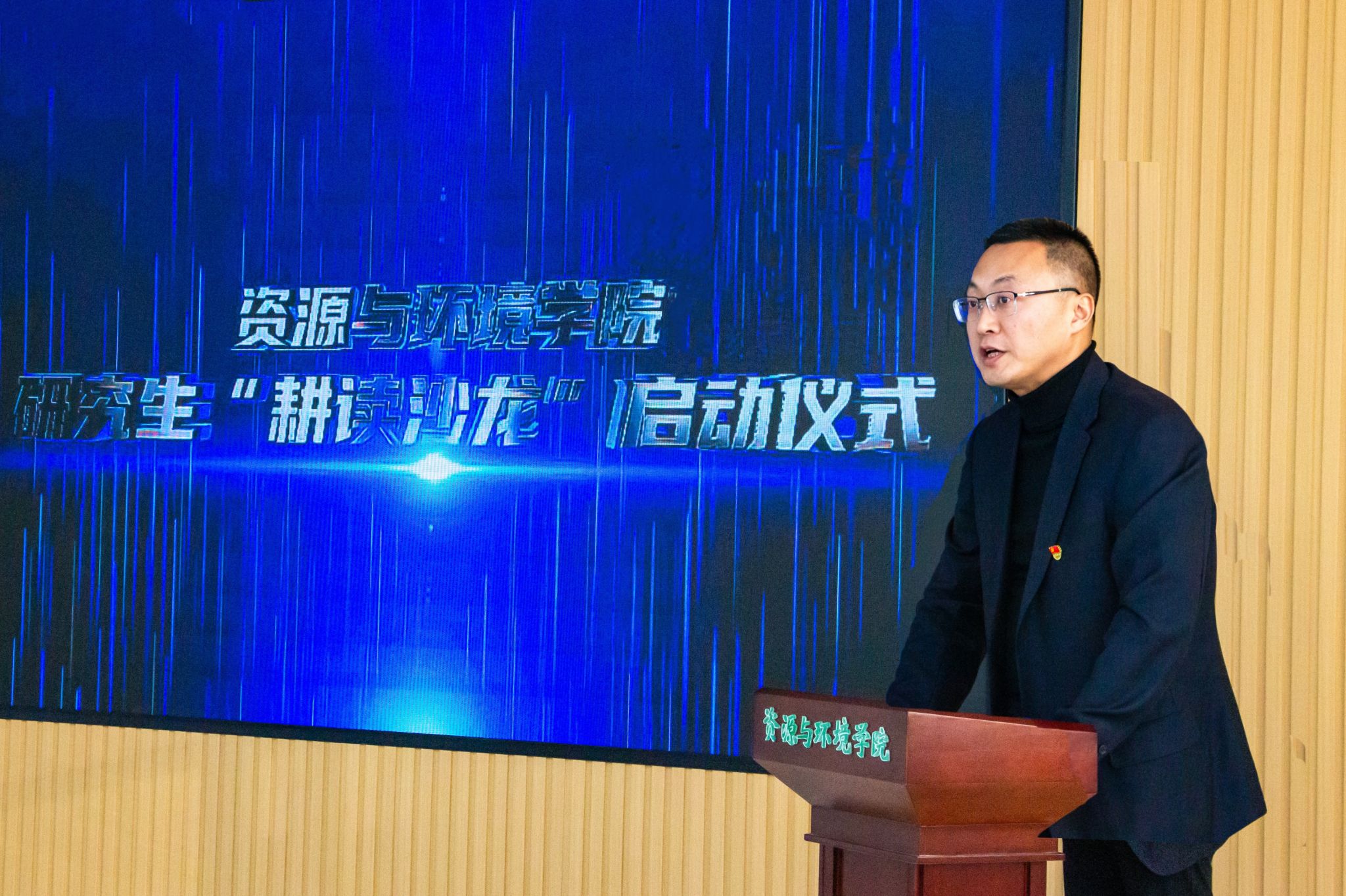 为提升资源与环境学院研究生思政育人质效,进一步夯实耕读教育工作品牌,持续强化思想引领,助力学院研究生成长成才,12月16日,学院举办耕读沙龙启动仪式暨首期耕读沙龙活动。学院党委书记刘刹、行政负责人曲建华、副院长姜昭、副处级辅导员张李滨、研究生秘书杨润清、研究生辅导员韩亮及60余名研究生参加活动。活动由学院党委副书记许辉主持。