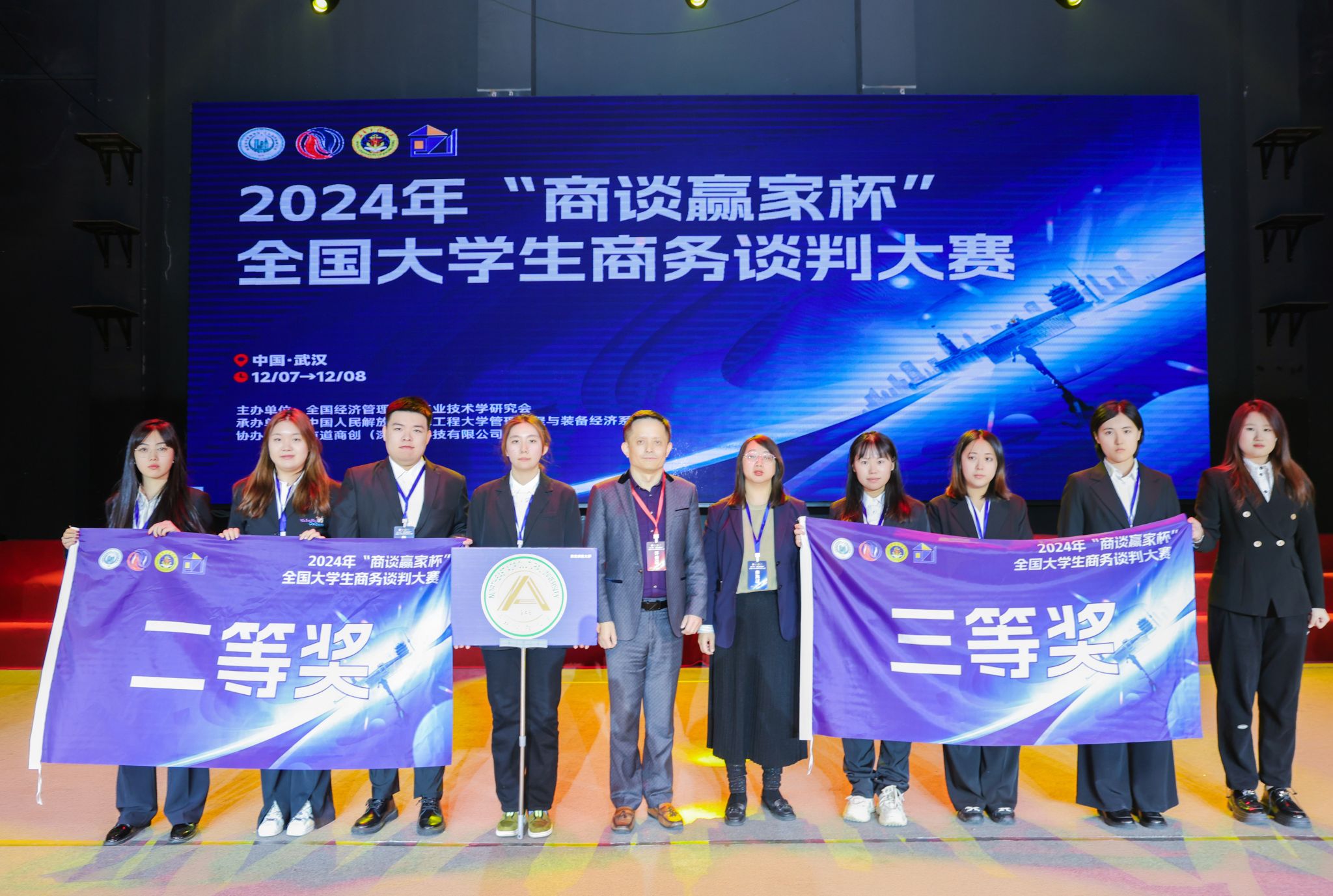 近日,“商谈赢家杯”2024年全国大学生商务谈判大赛总决赛在武汉海军工程大学举办,来自全国60余所高校的200余支参赛队伍参赛,经激烈角逐,我校经济管理学院选派的两支参赛队伍分别荣获全国二等奖1项、三等奖1项,2名选手荣获“优秀谈判手”荣誉称号。