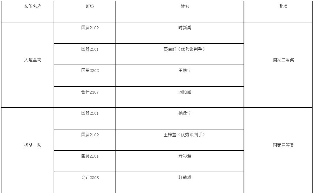 在初赛阶段,我校两支参赛队伍充分收集资料,集思广益,高质量完成项目策划书,并获得决赛资格。在决赛准备阶段,参赛团队运用竞赛平台,与外校参赛团队进行模拟训练,并多次开展校内模拟对抗演练,不断优化谈判方案、完善谈判技巧。在全国总决赛中,两支参赛队伍通过默契的团队协作,最终取得优异成绩。