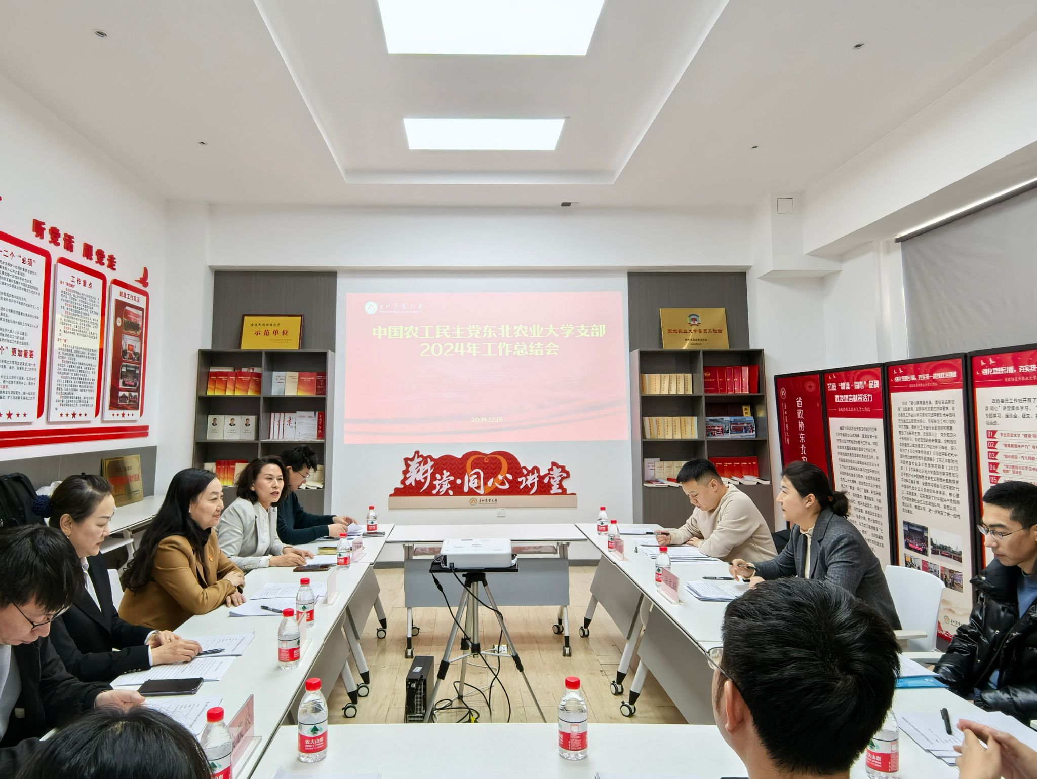12月18日下午,农工党东北农业大学支部在学校“党外知识分子活动之家”召开2024年度工作会议。农工党黑龙江省委会组织部部长张文琦应邀参加会议并讲话,学校统战部副部长冯丹、农工党黑龙江省委会组织部科长苏礼、农工党东北农业大学支部主委谢秋菊、副主委郭惠秋、支部组织委员徐荻秋、宣传委员郑书朋、支部全体党员参加会议。会议由谢秋菊主持。
