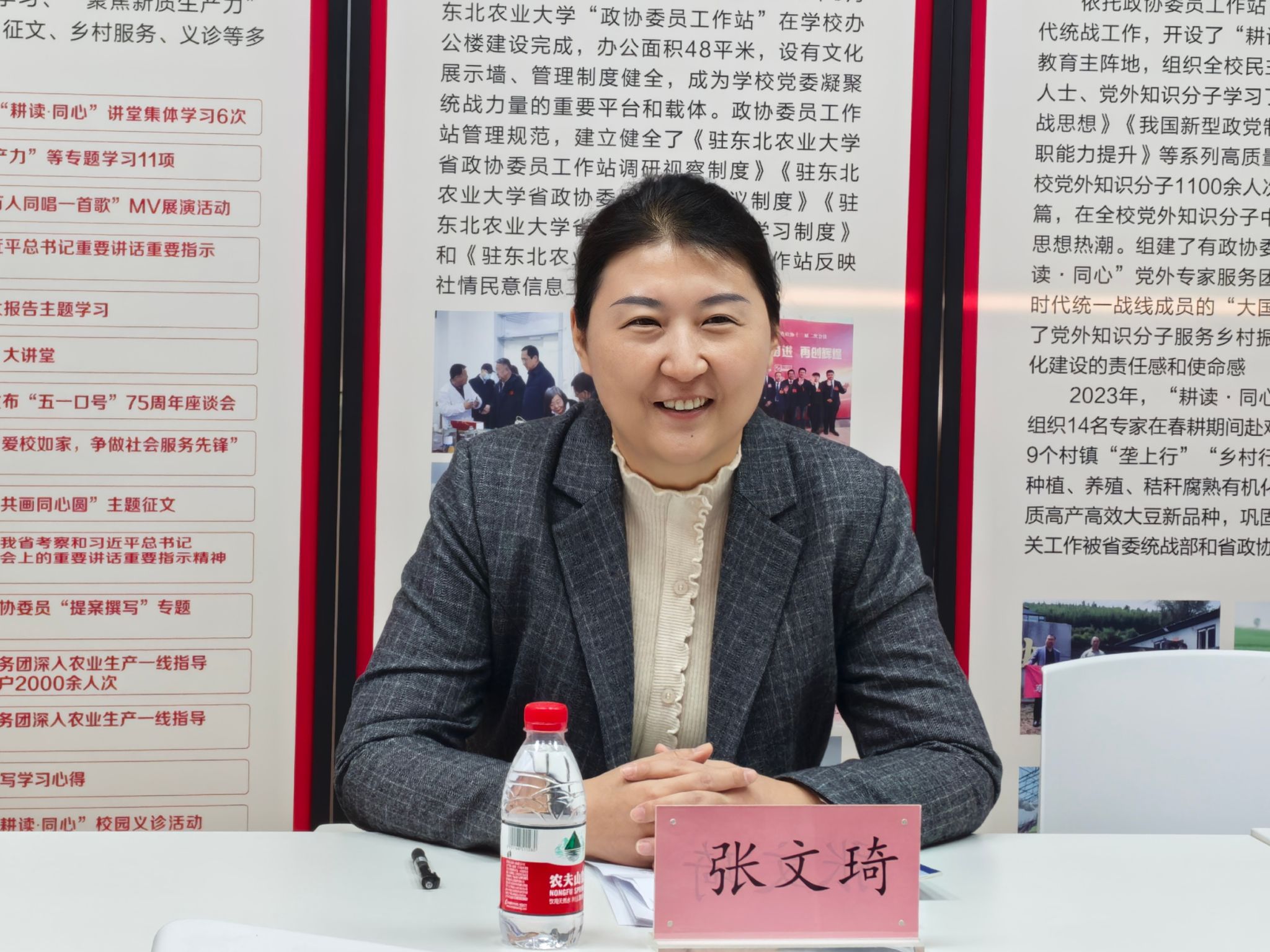 冯丹对张文琦、苏礼一行的到来表示热烈欢迎,向农工党省委会对学校支部建设给予的关心、支持、指导表示衷心感谢。她表示,学校党委始终高度重视统一战线工作,充分团结民主党派,积极发挥各党派人士的优势作用,共同推进学校建设,服务龙江发展。会上,冯丹重点介绍了2024年学校统战工作取得的主要成绩。