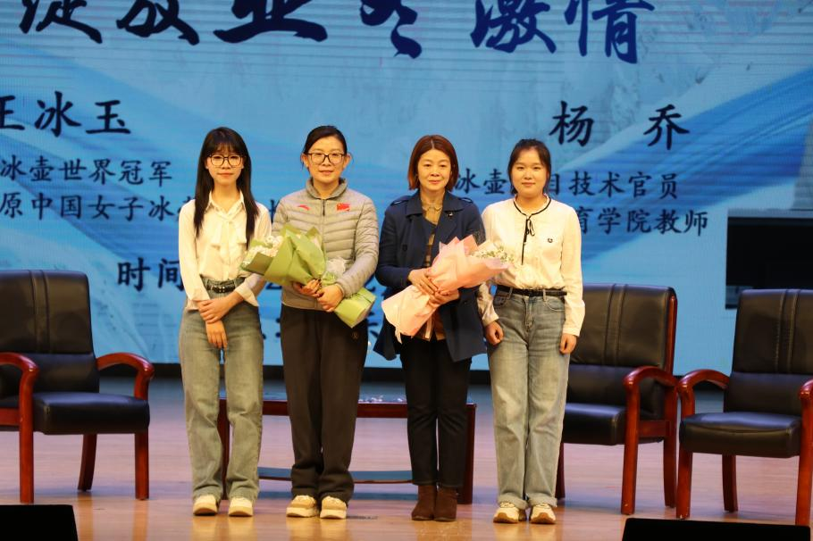 王冰玉以《永不言弃,积极进取》为题,围绕冰壶历史、冰壶项目特点、中国冰壶发展、结合自身职业生涯经历进行分享,为现场师生普及冰壶知识,鼓励同学们热爱体育,学习运用体育精神与智慧助力学业和工作的成功,勉励同学们微笑面对困难,耐心拼搏进取,珍惜大学生活,切实用自身经历让同学们近距离感受冰壶项目体现的永不言弃的精神和团结一致的斗志。
