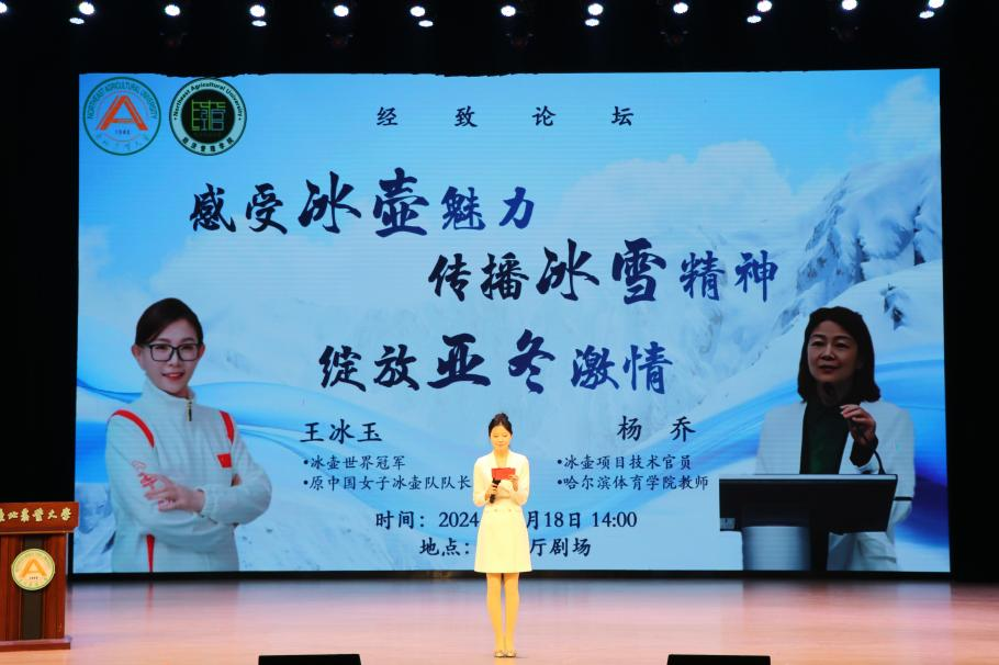 为落实五育并举方针,提升体育育人功能,充分发挥以体育智、以体育心作用,扎实培养广大青年学生奋发向上、顽强拼搏的意志品质,12月18日,经济管理学院联合东农经管校友联盟举办第一期经致讲坛暨“感受冰壶魅力、传播冰雪精神、绽放亚冬激情”分享会。邀请冰壶世界冠军、原中国女子冰壶队队长、韩国江陵女子冰壶世锦赛冠军、温哥华冬奥会季军、北京冬奥会冰壶项目竞赛主任、北京体育大学中国雪上运动学院教师王冰玉,经济管理学院校友、冰壶项目技术官员杨乔进行冰壶运动专题分享,经济管理学院领导、教师代表、全体辅导员、校友代表、全校各学院热爱冰壶运动的1100余名学生参加分享会。