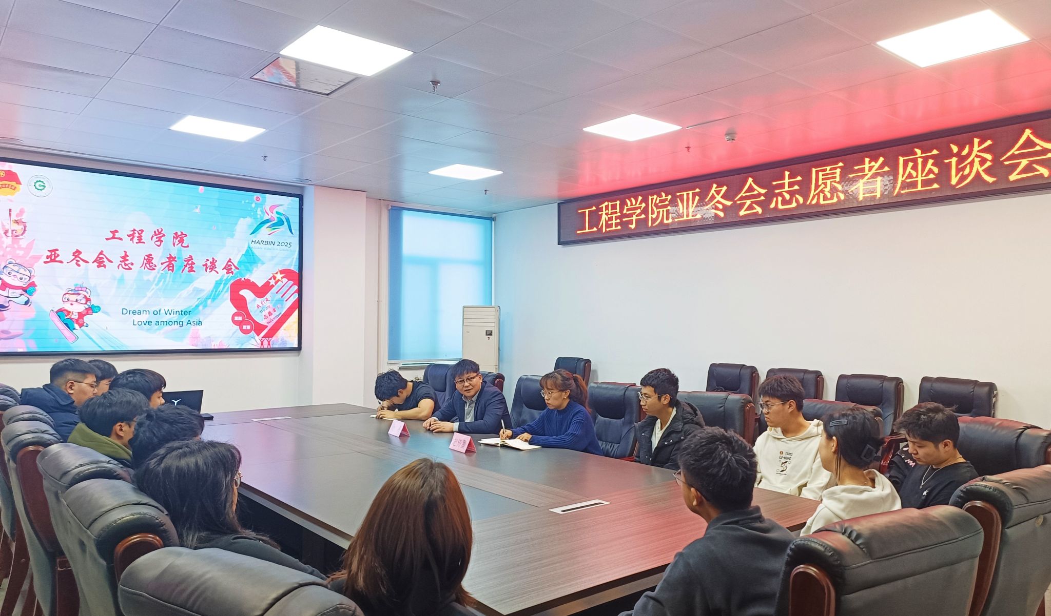 为保障亚冬会志愿者工作顺利推进,大力提升志愿服务过程中的团队凝聚力和向心力,工程学院举办亚冬会志愿者座谈会。座谈会由工程学院团委书记赵倚墨主持,学院党委副书记孙涛及全体志愿者参会。